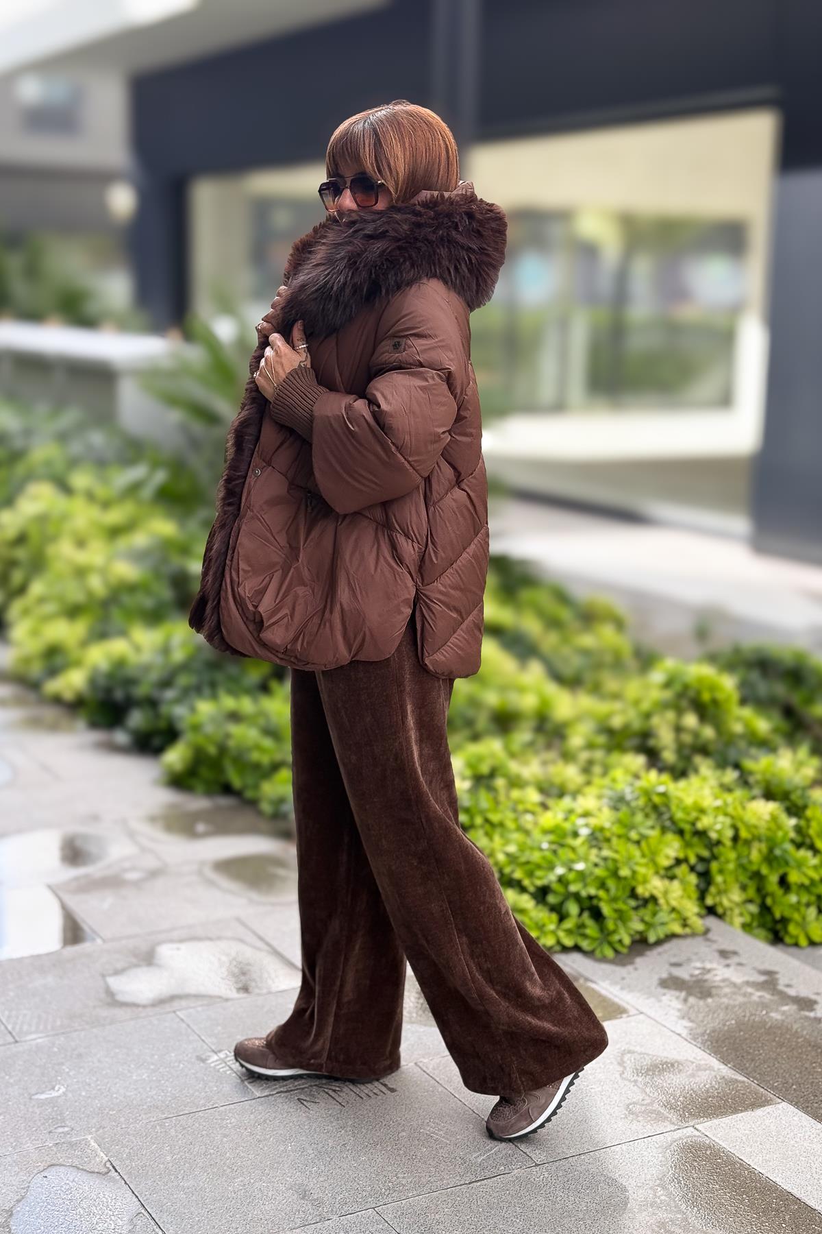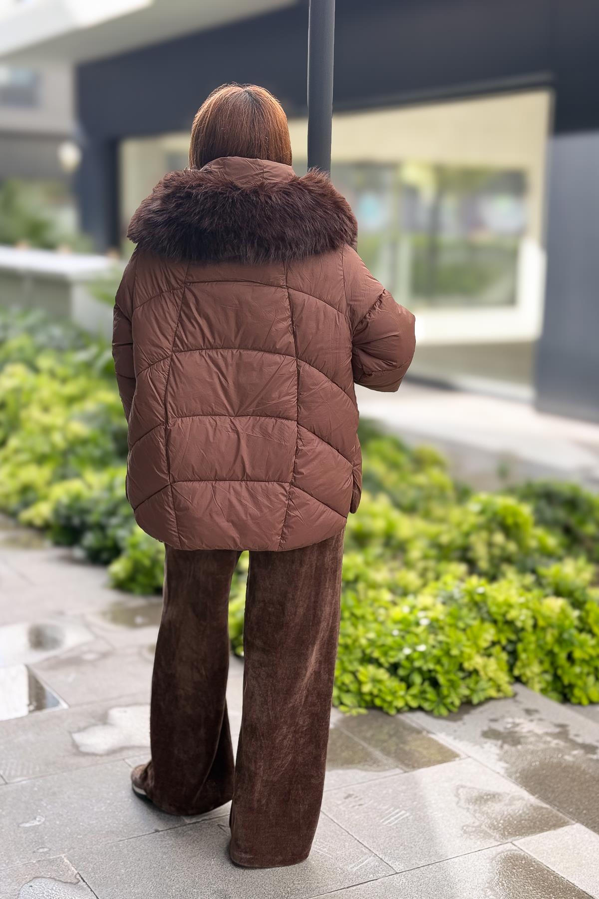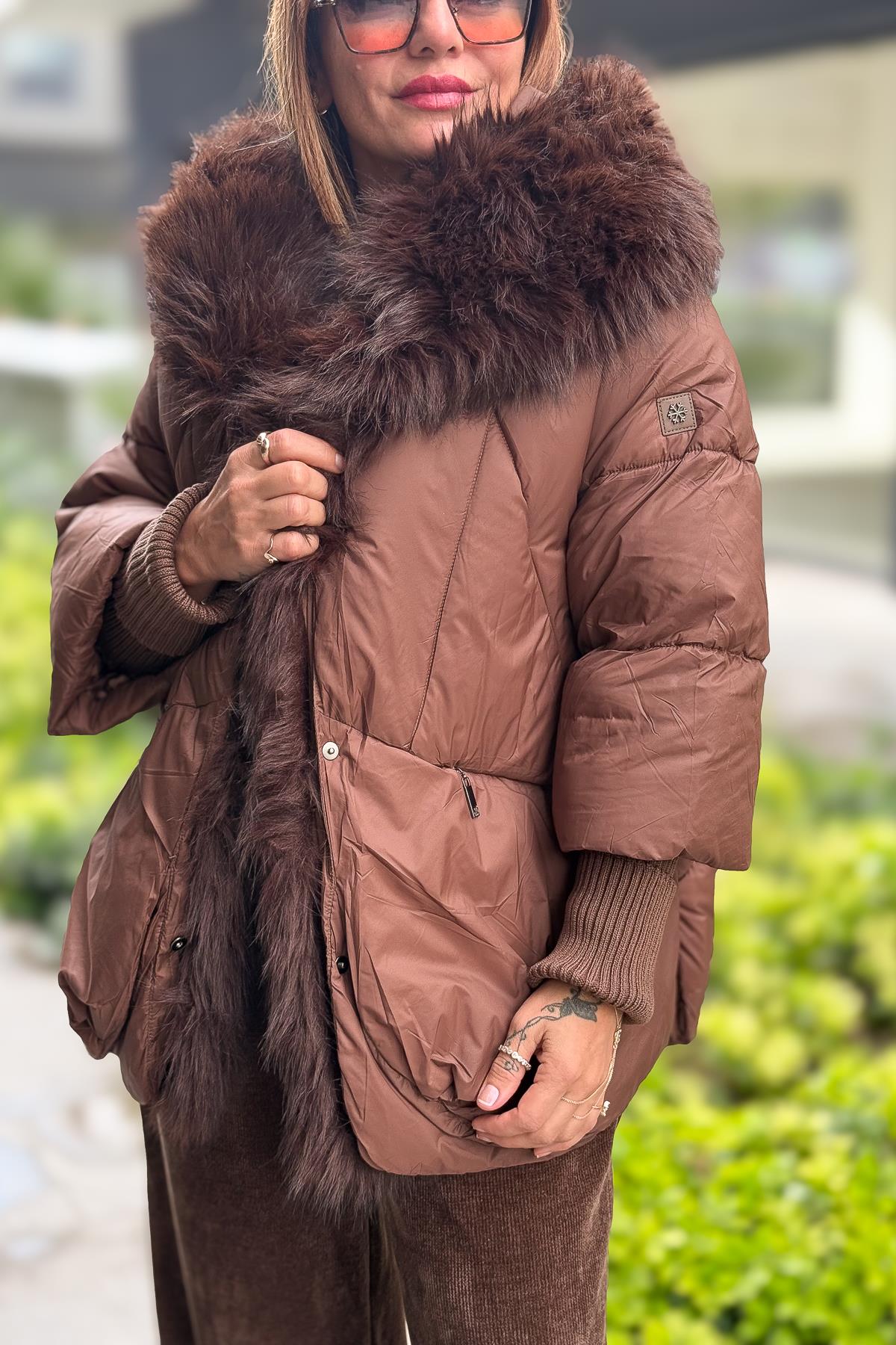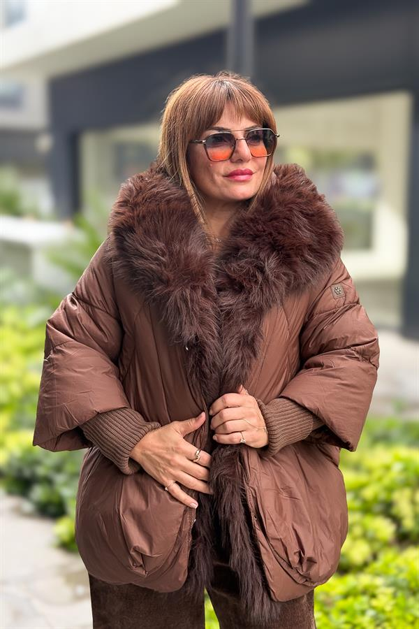 Premium Büyük Kürklü Mont Kahverengi Renk