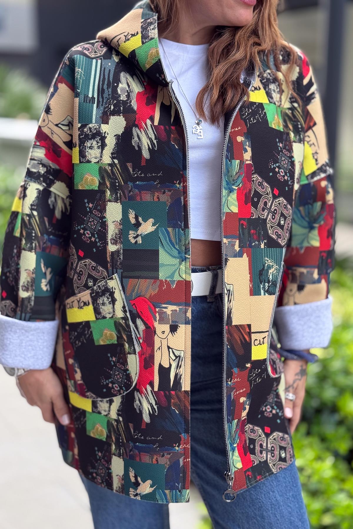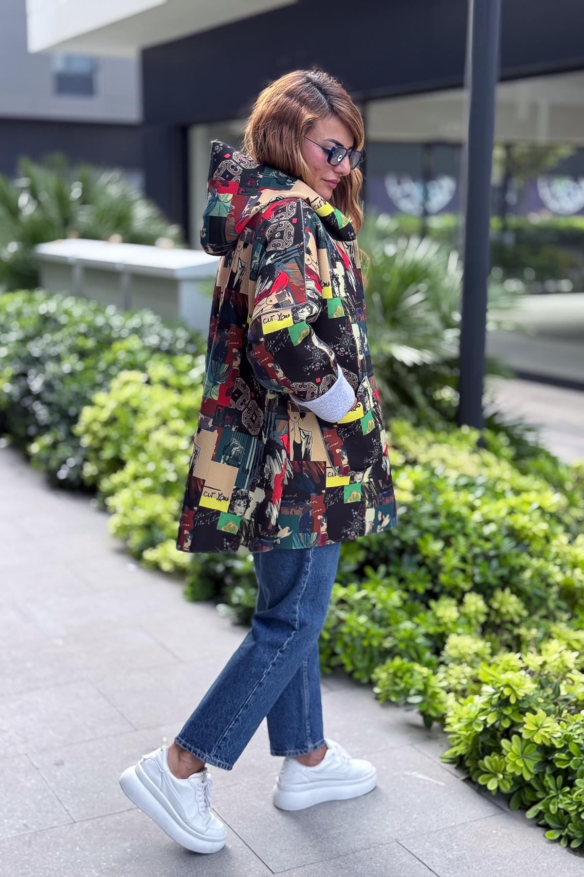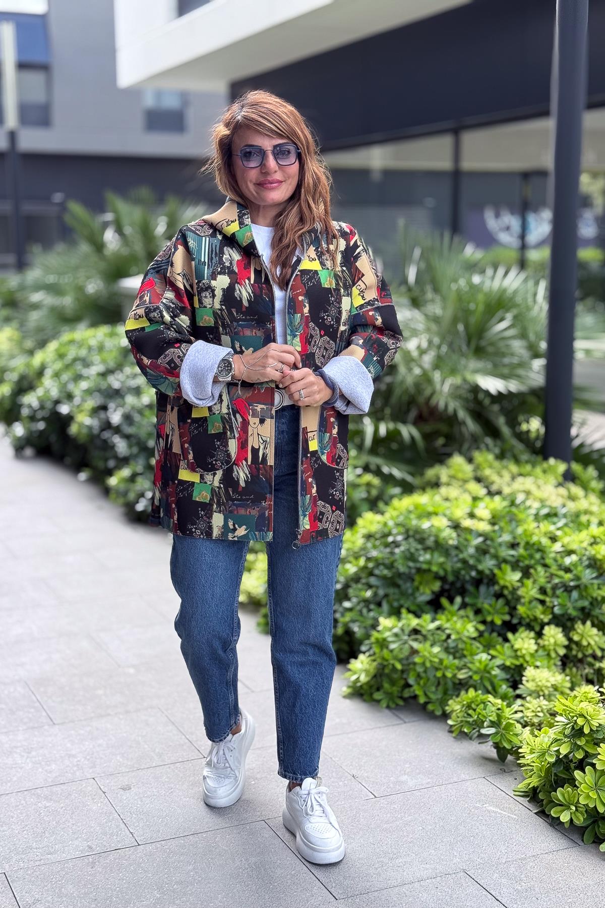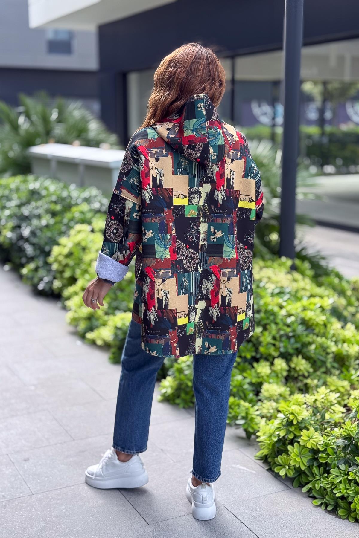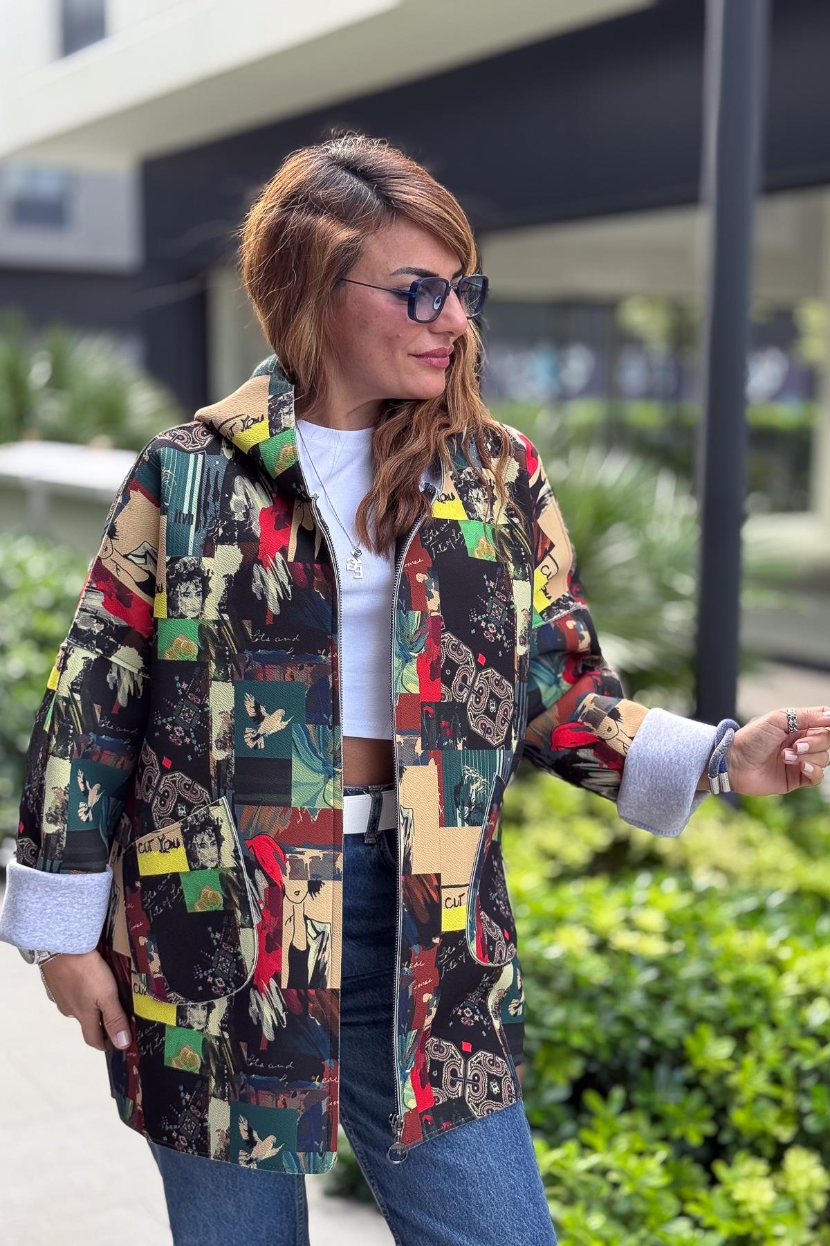 Renkli Desenleri Farklı Ceket Fıstık Yeşil Renk