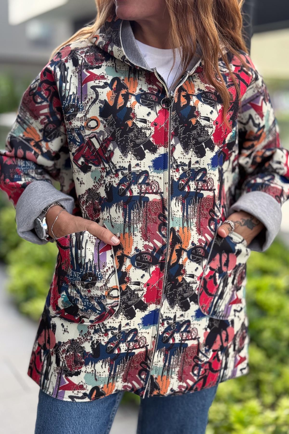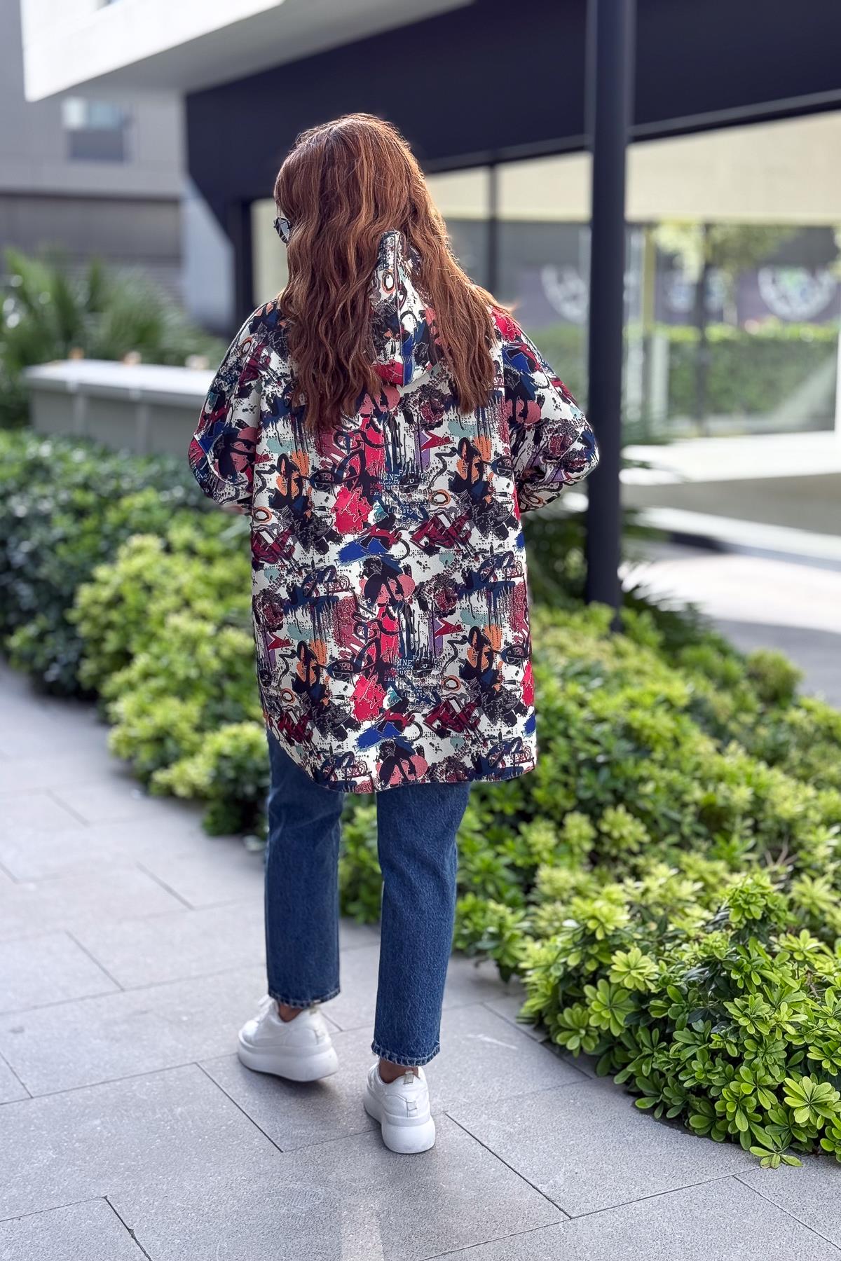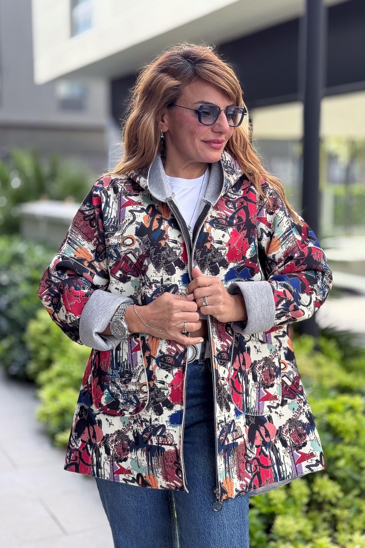 Renkli Desenleri Farklı Ceket Kırmızı Renk