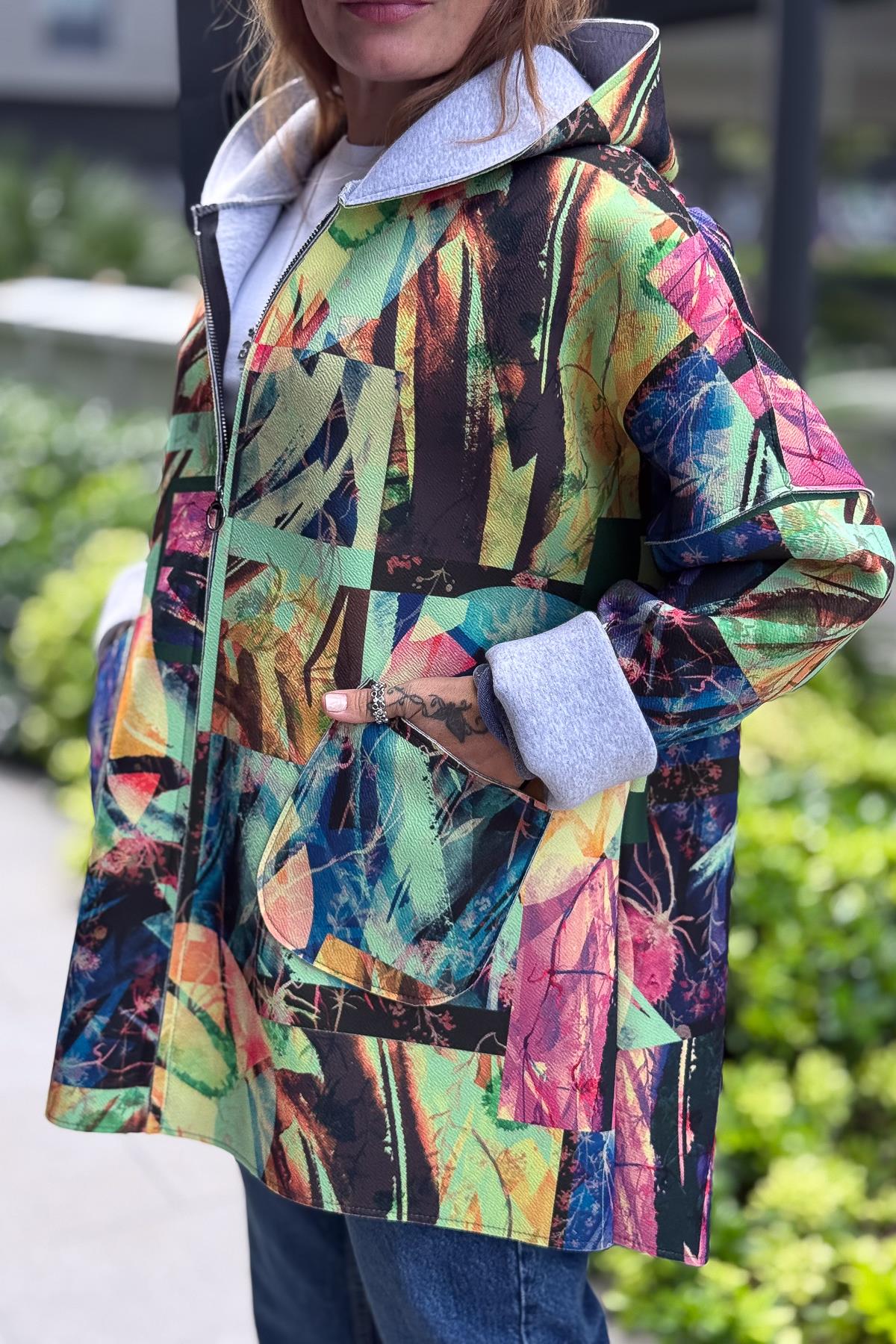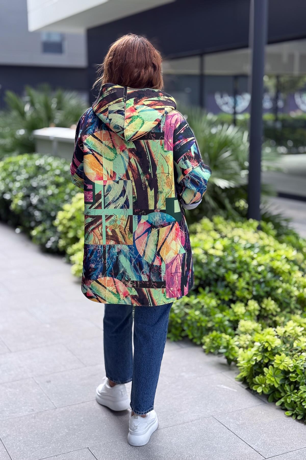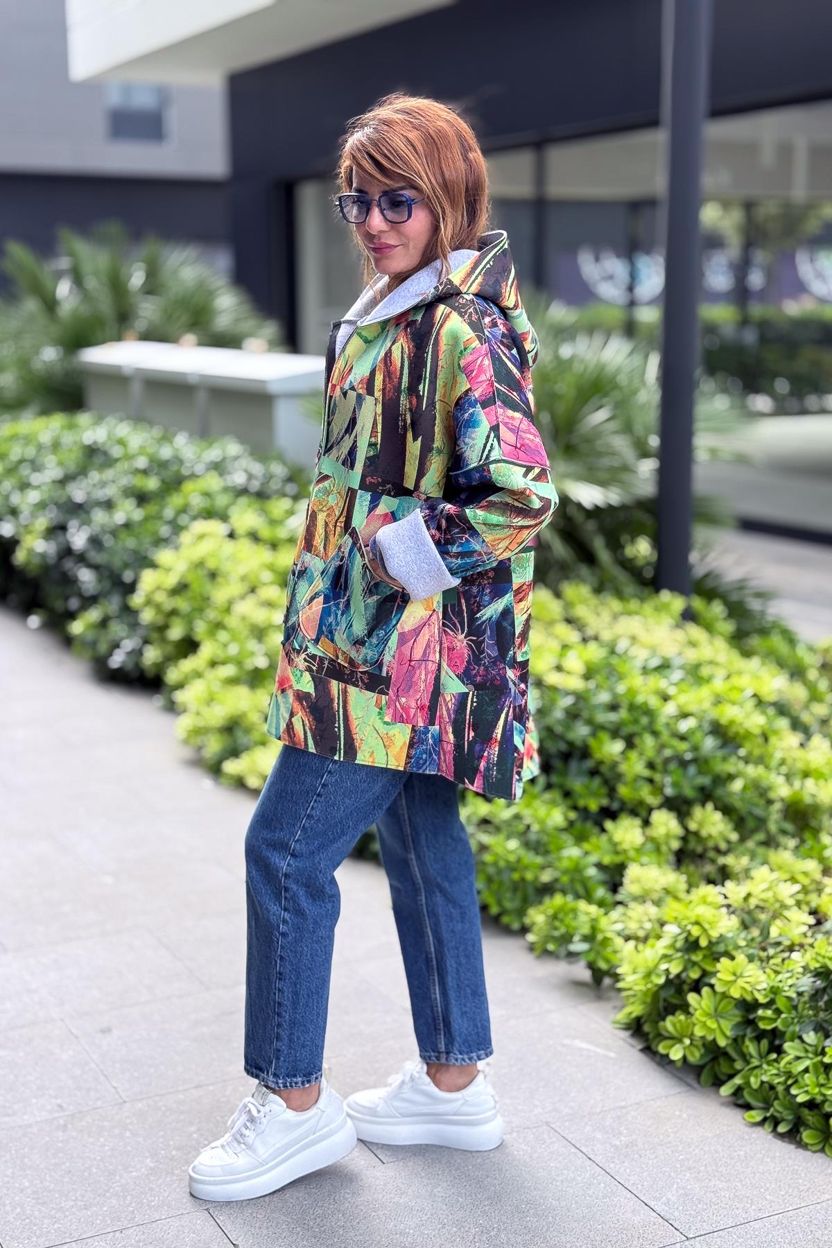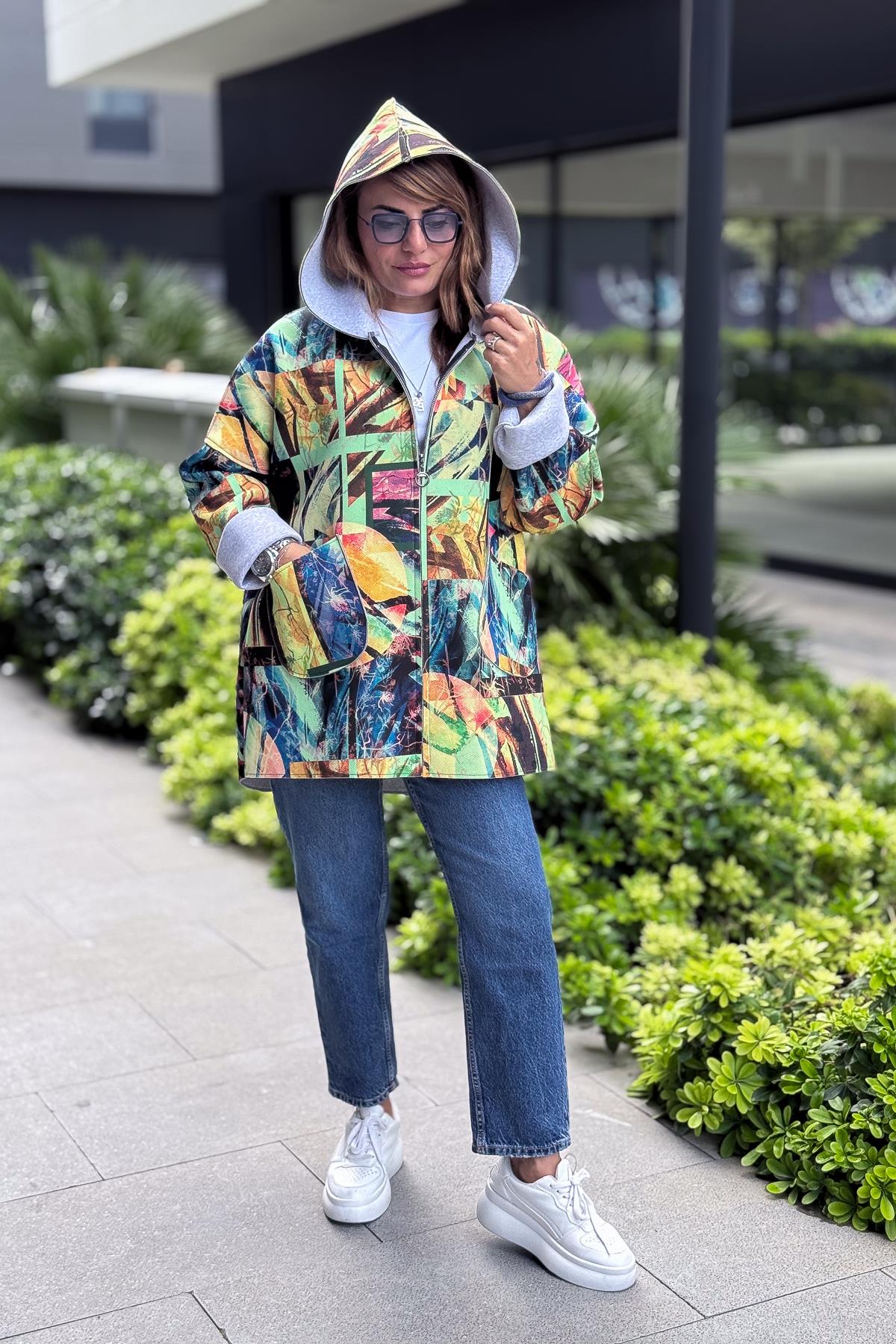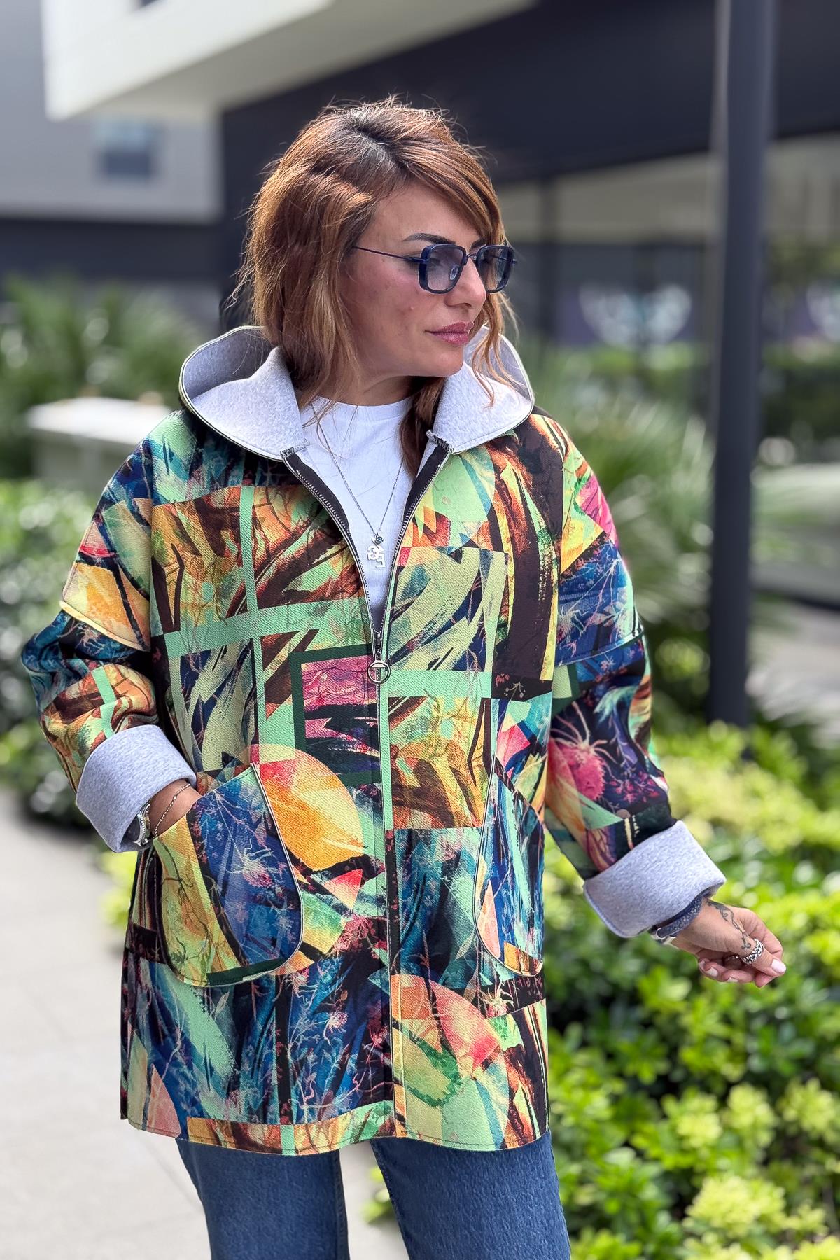 Renkli Desenleri Farklı Ceket Neon Sarı Renk