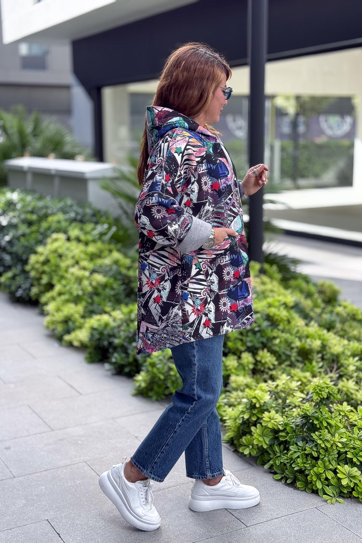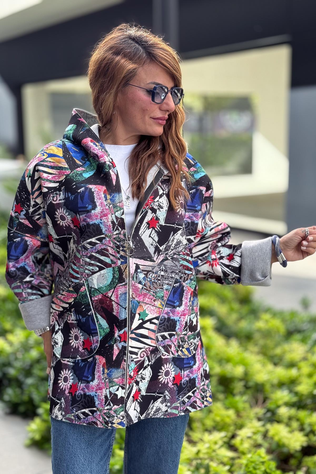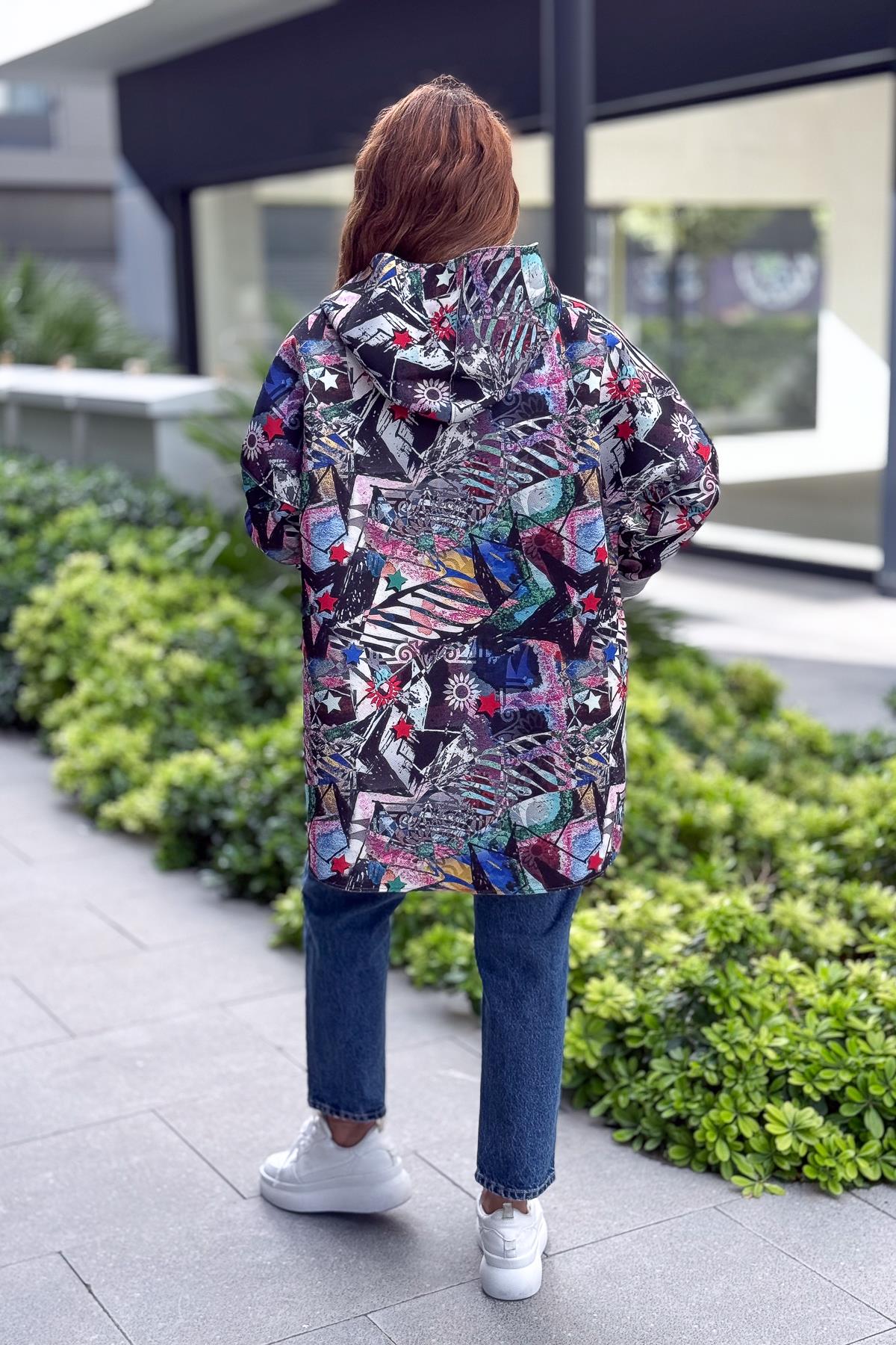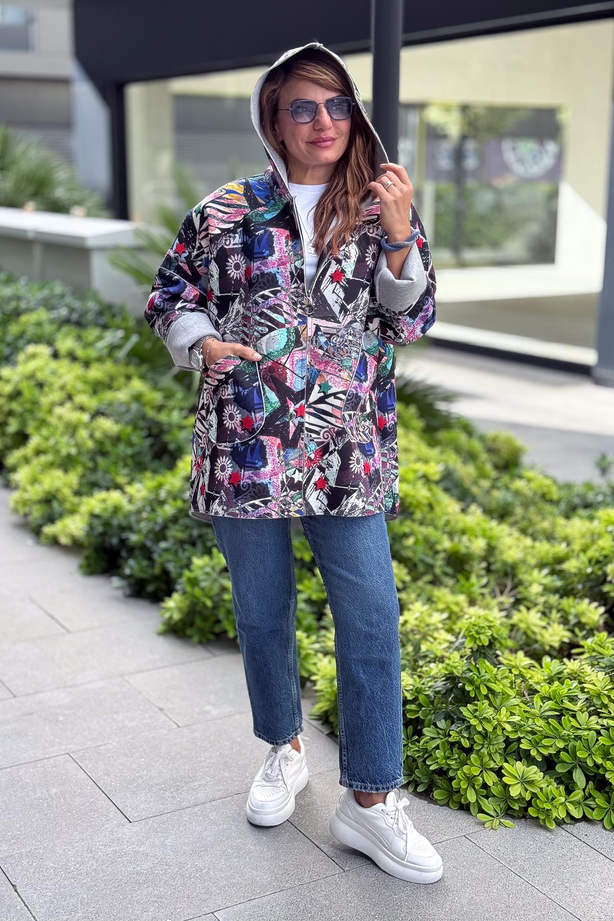 Renkli Desenleri Farklı Ceket Pembe Renk