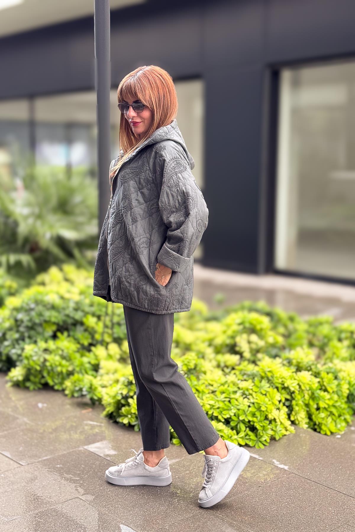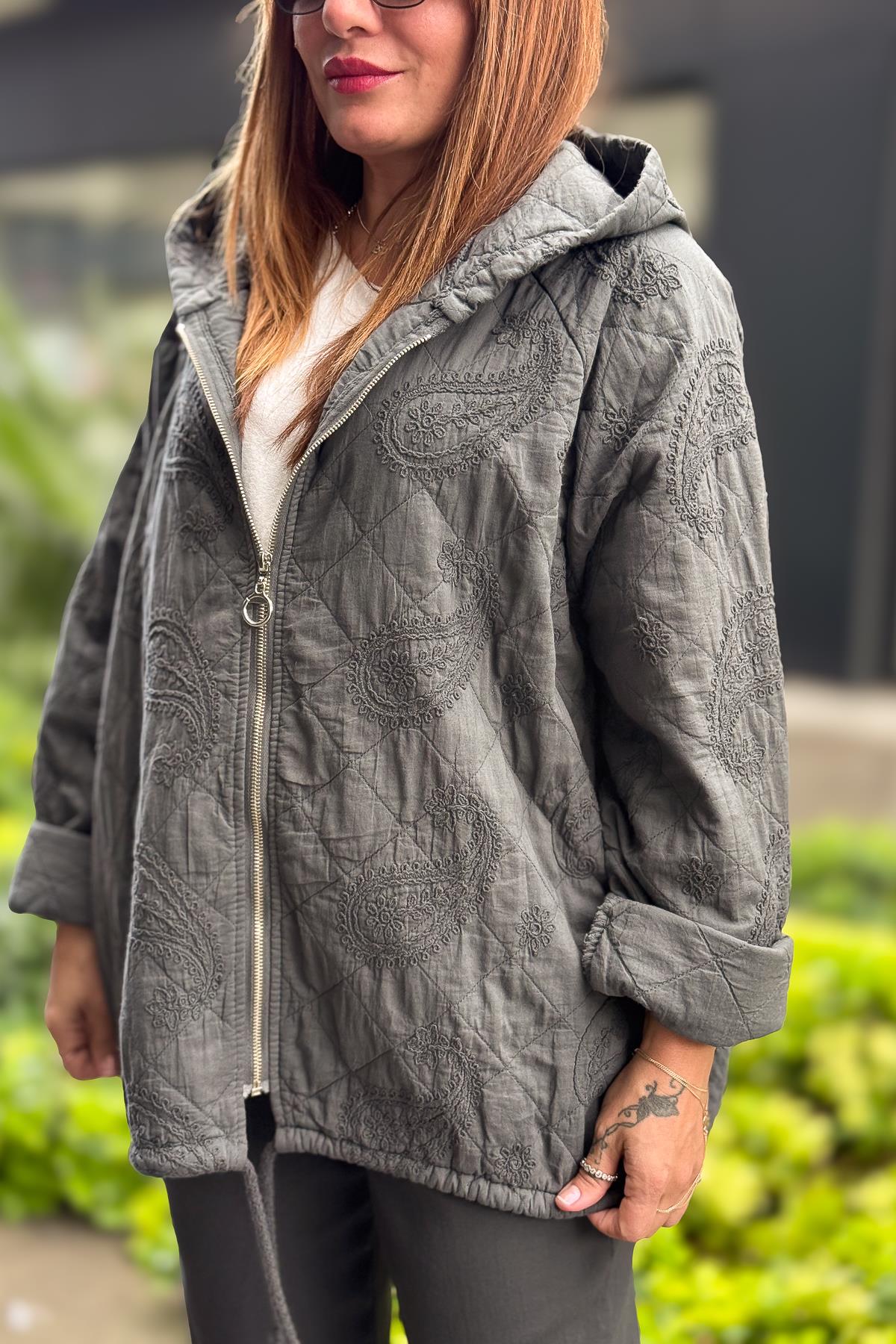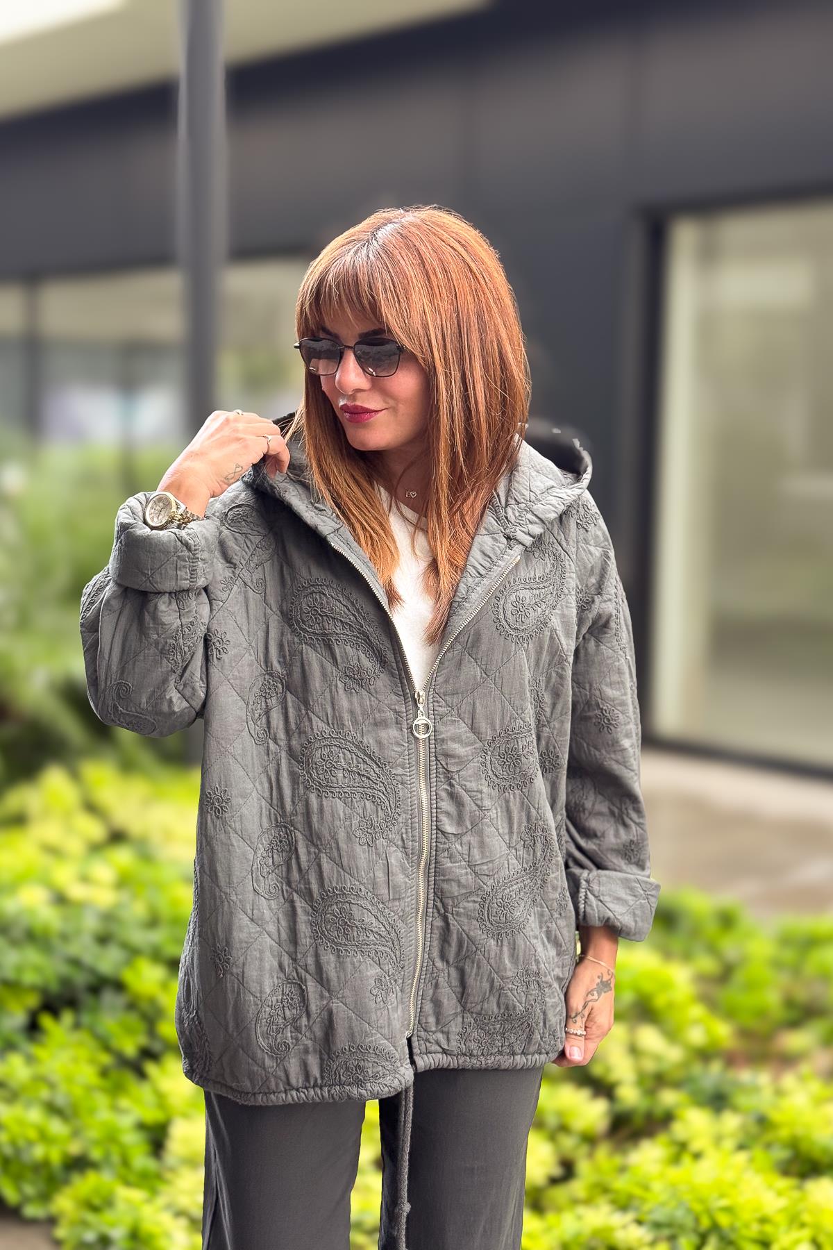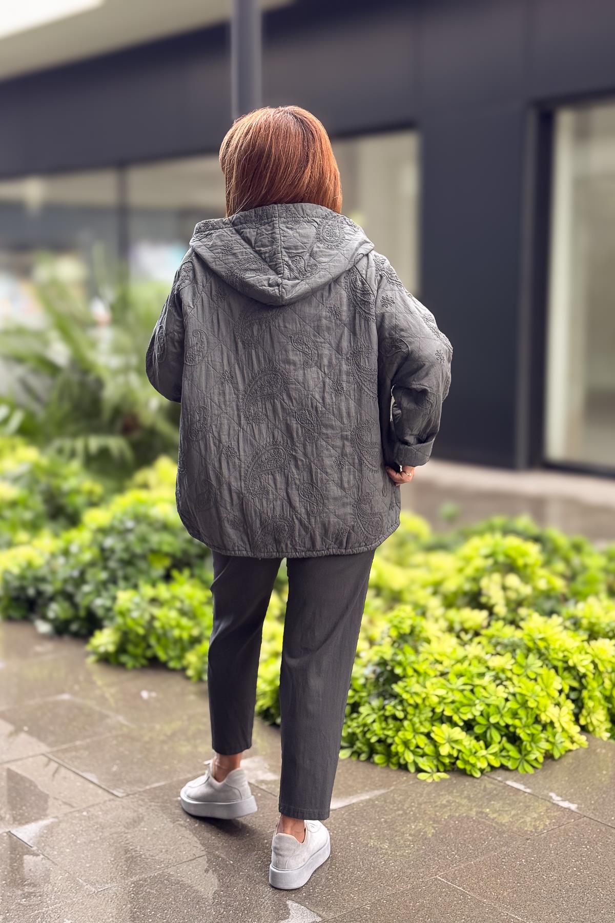 Şal Desenli Kapitone Ceket Antresit Renk