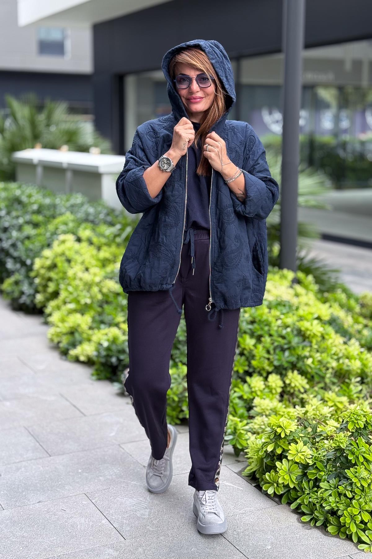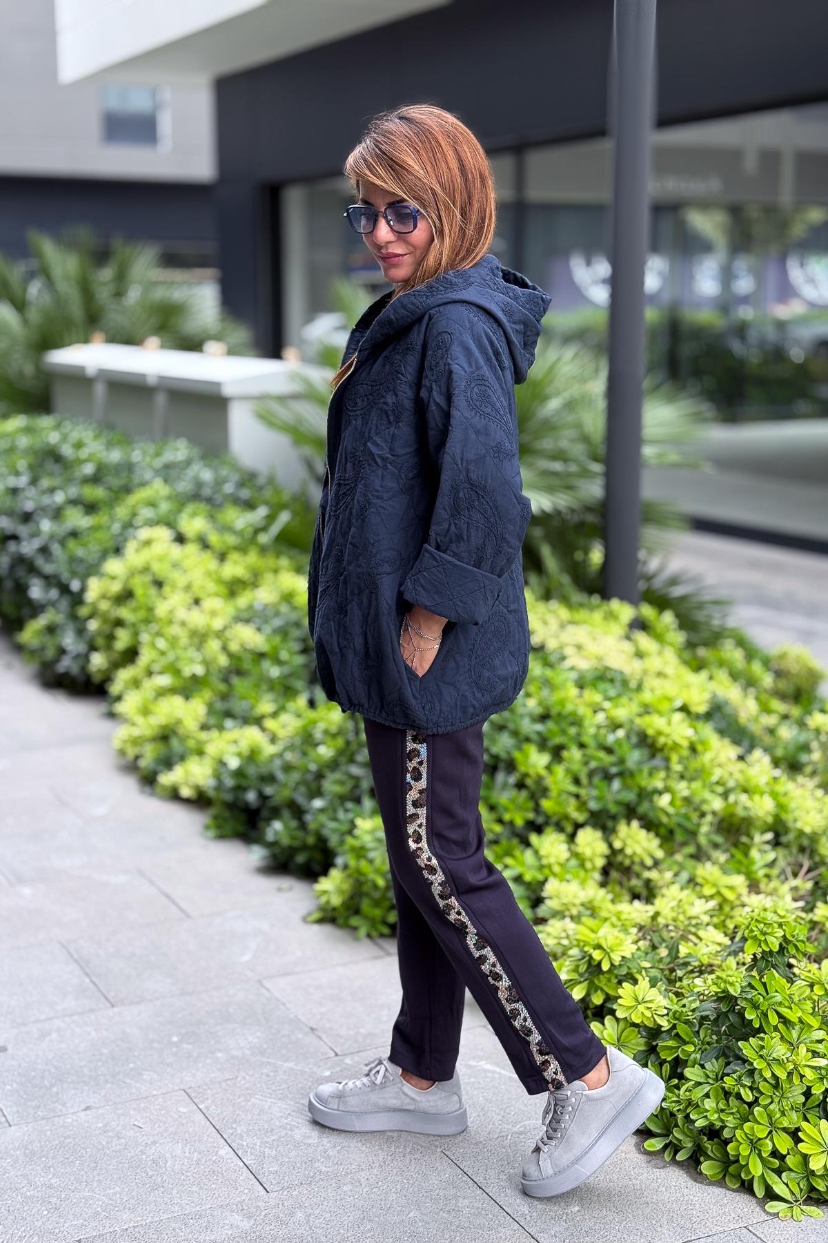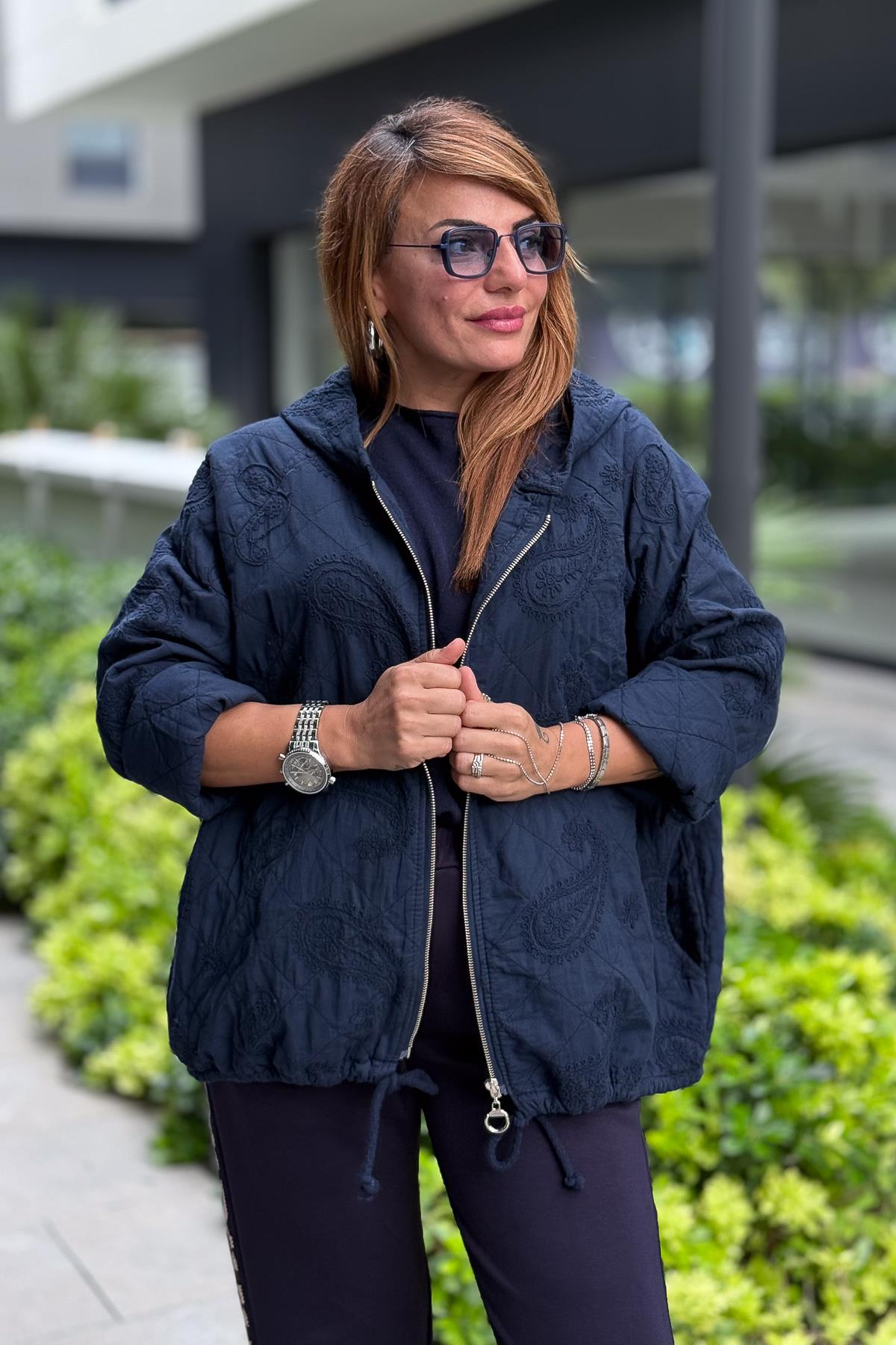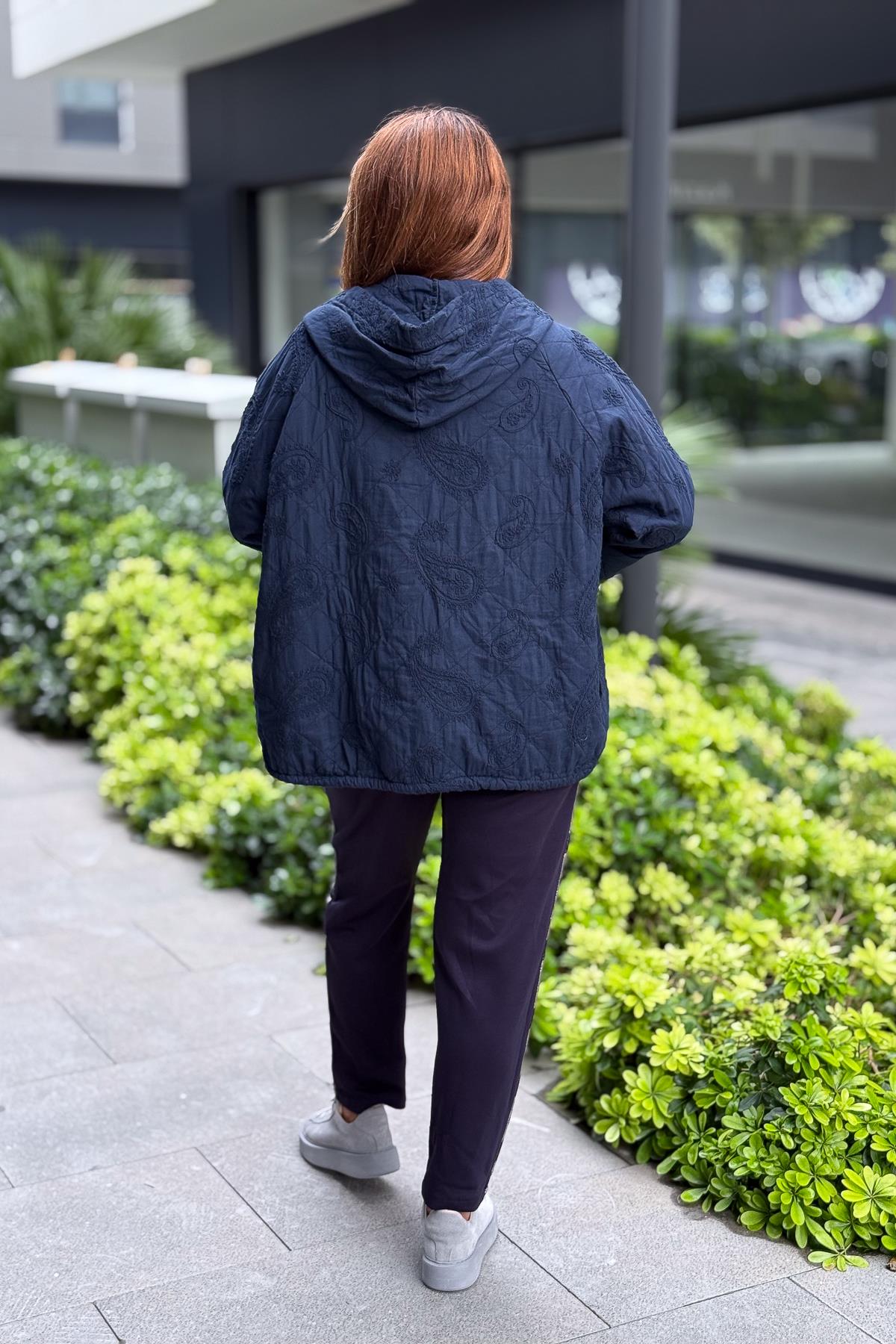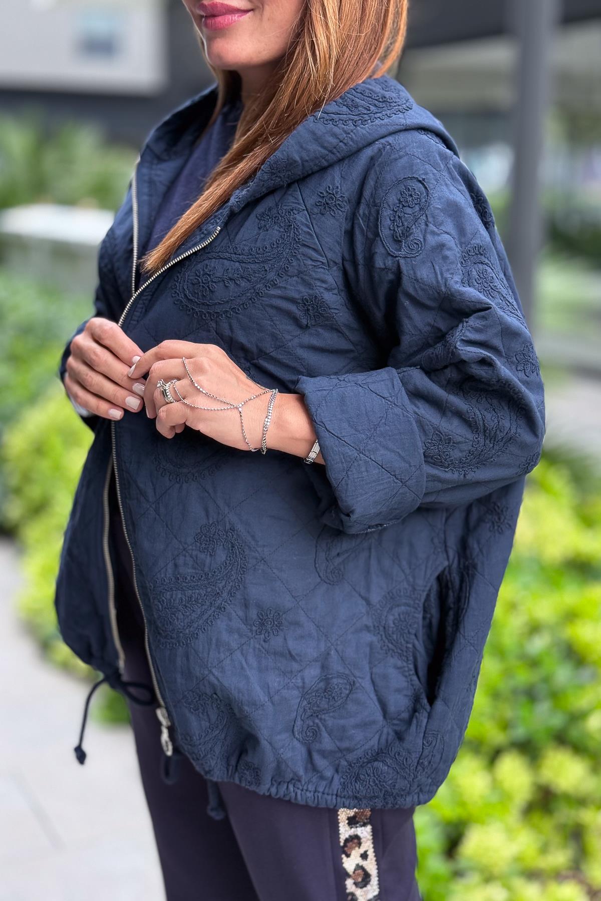 Şal Desenli Kapitone Ceket Lacivert Renk
