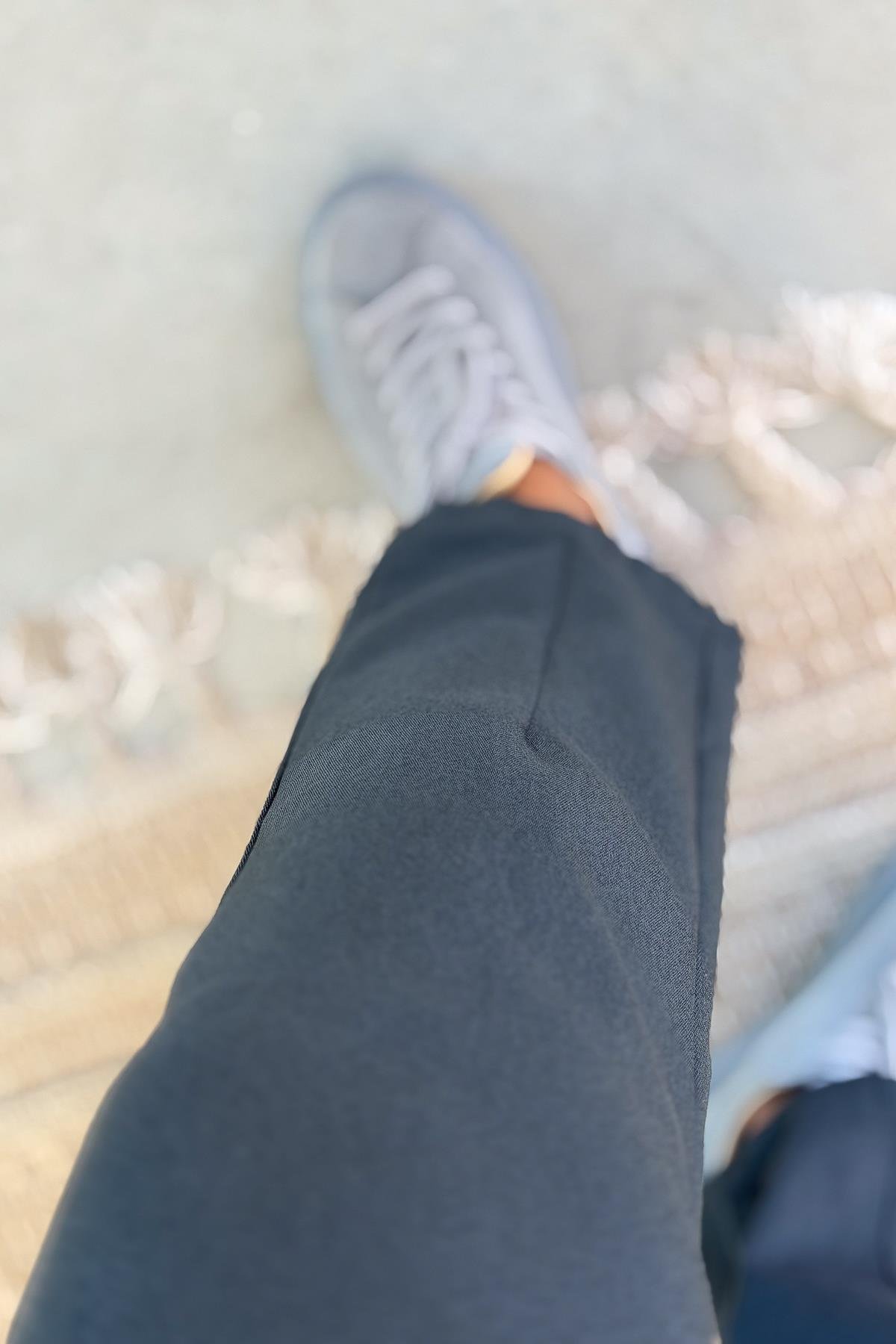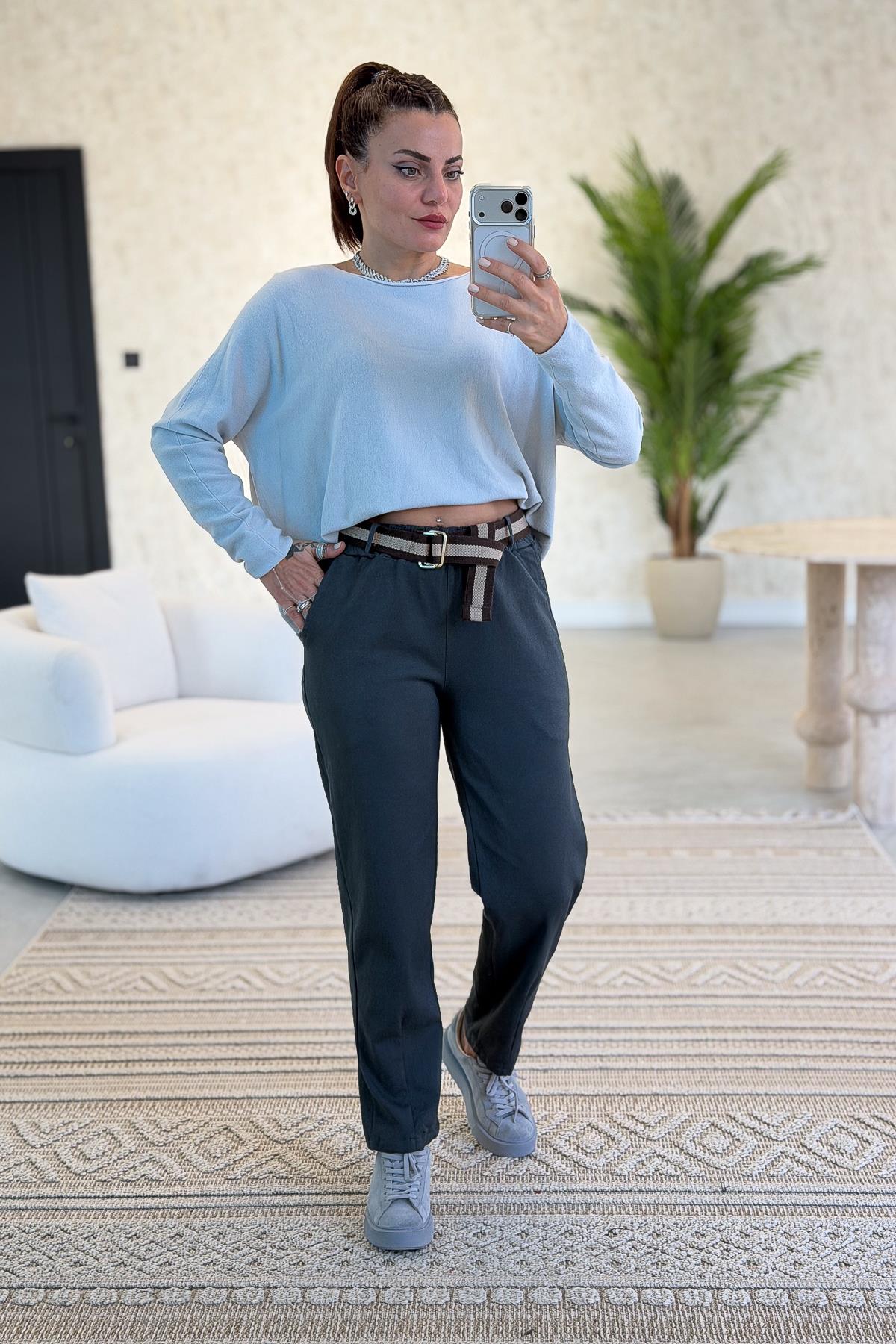 Şerit Kemerli Düz Basic Kanvas Likralı Pantolon Antresit Renk