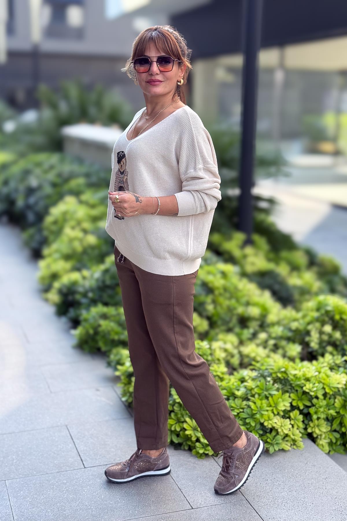Teddy V Yaka Triko Bej Renk
