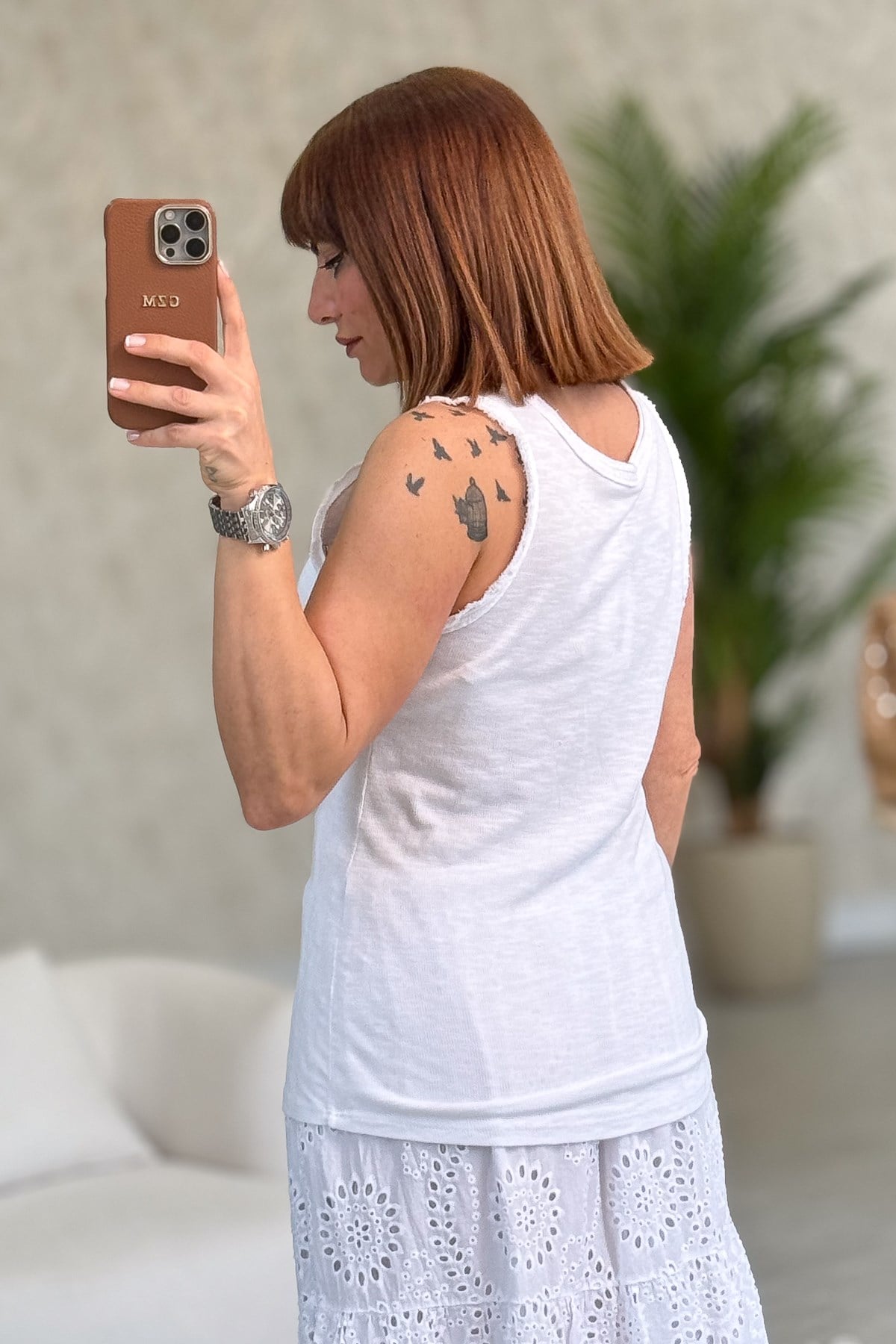 Yakası Pullu Fitilli Kolsuz Badi Beyaz Renk