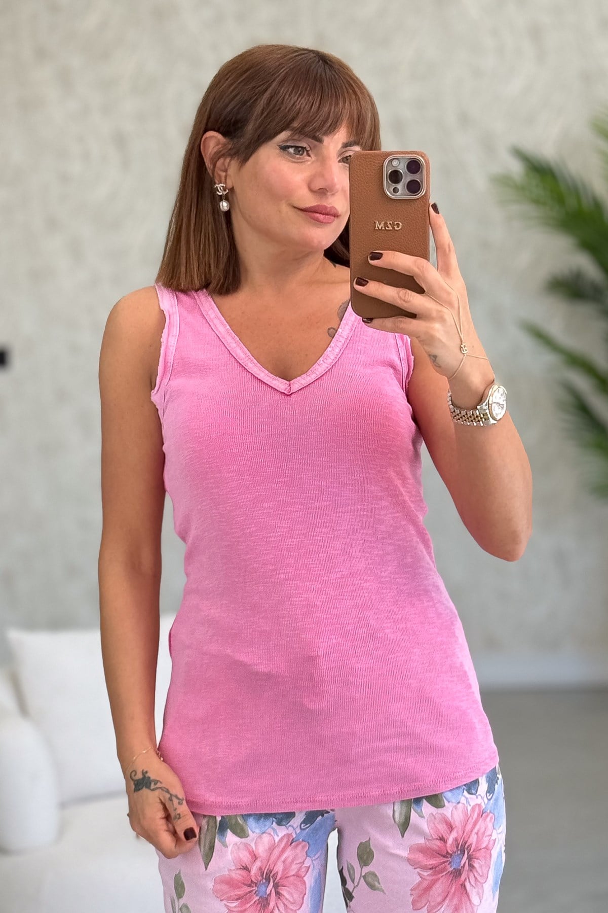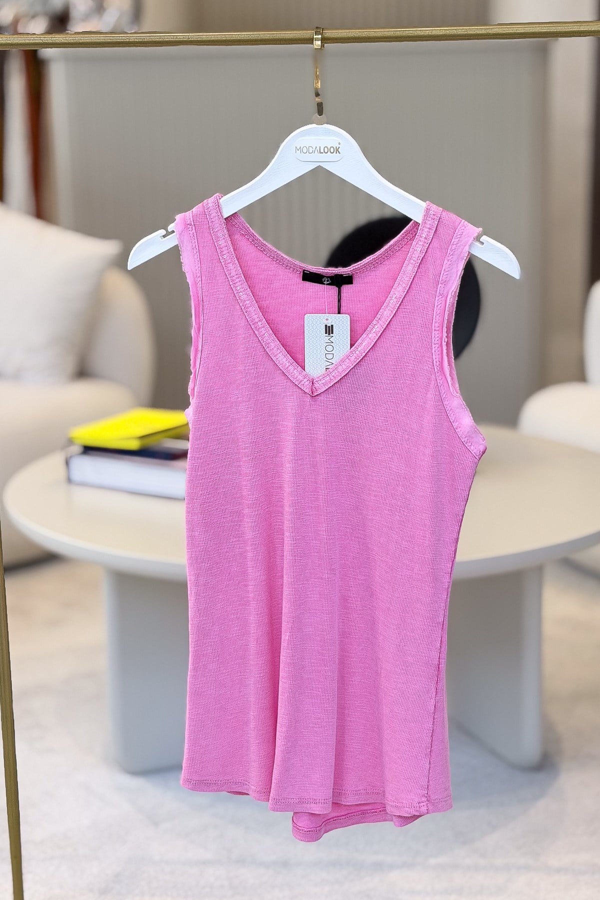 Yakası Pullu Fitilli Kolsuz Badi Pembe Renk