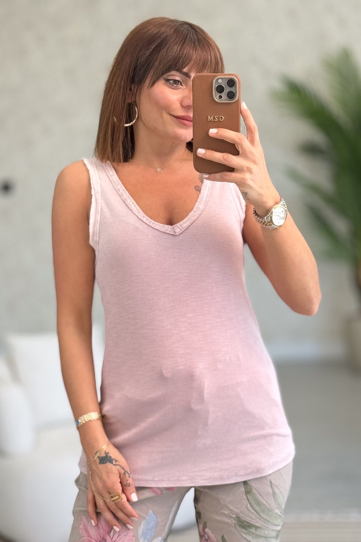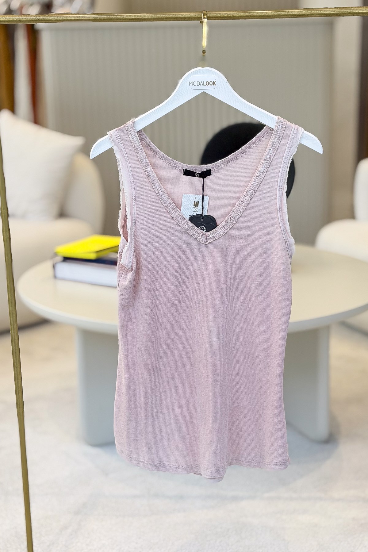 Yakası Pullu Fitilli Kolsuz Badi Pudra Renk