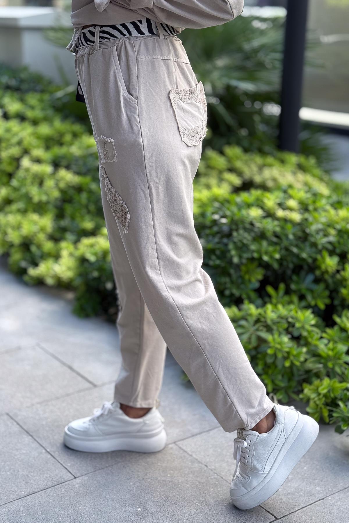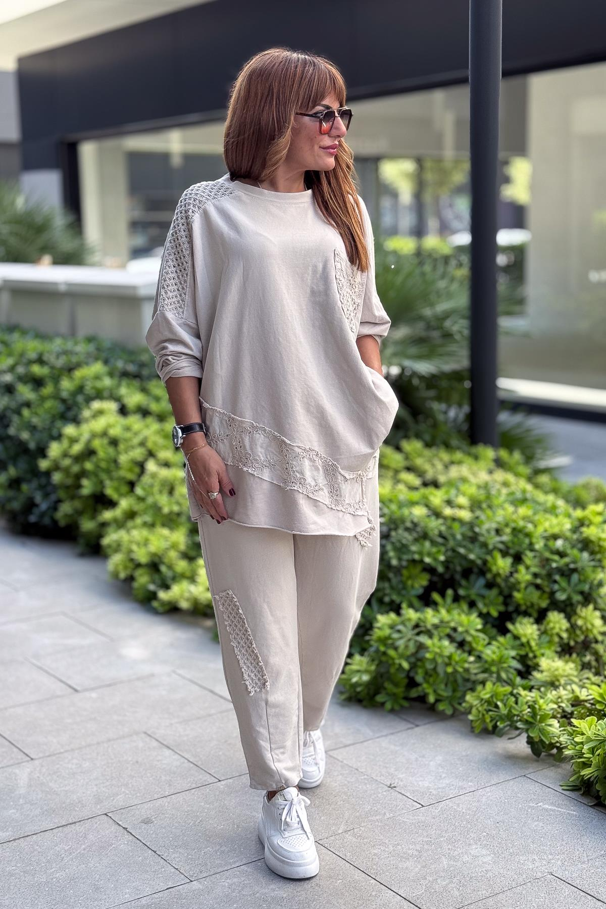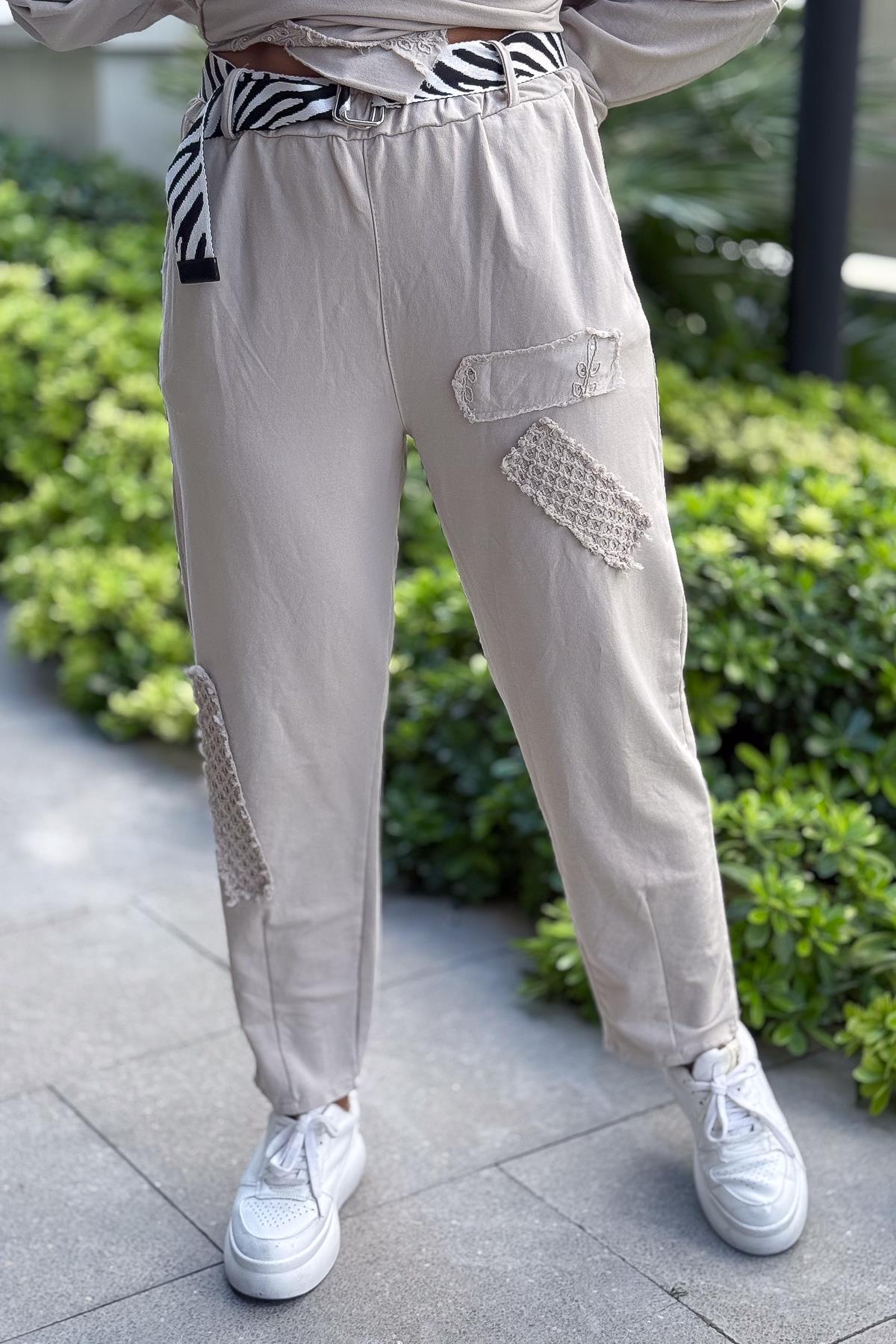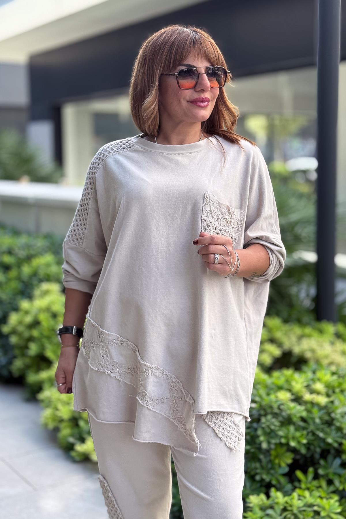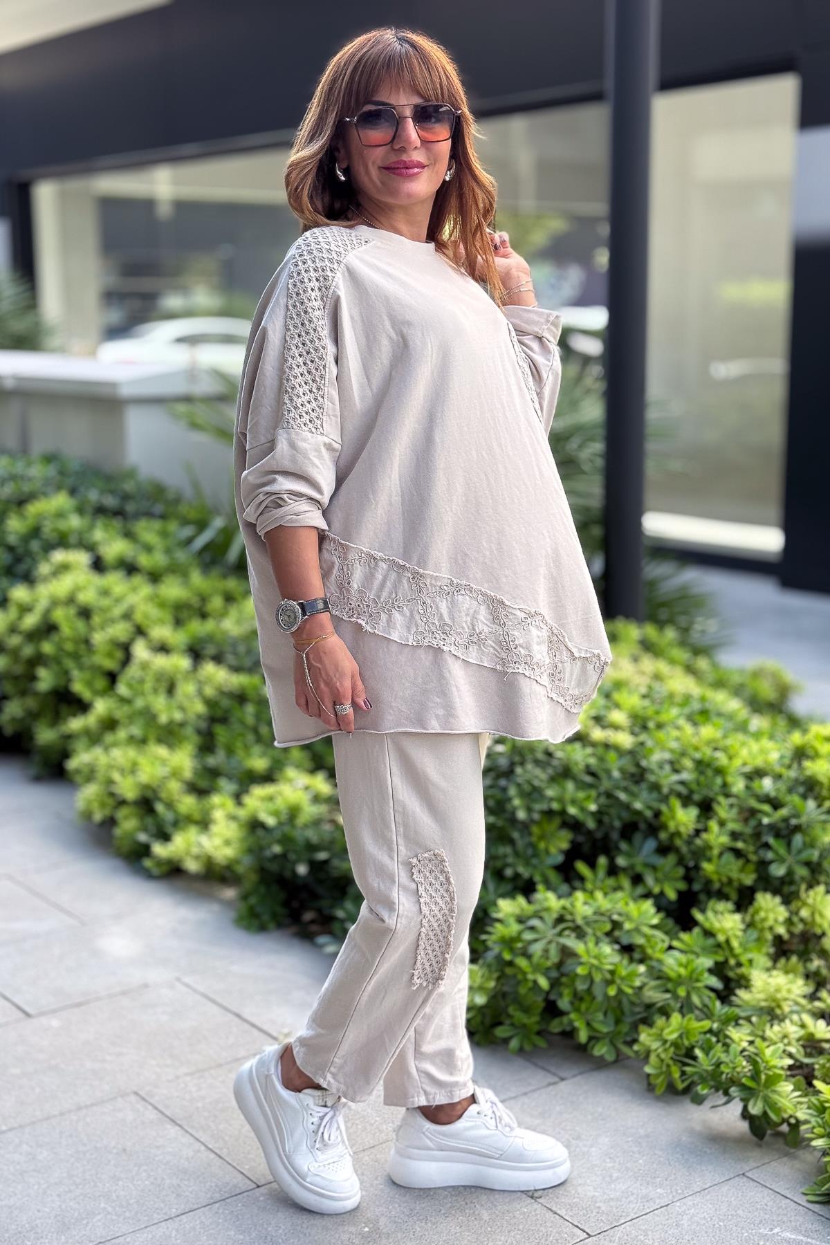 Zebra Kemerli File Detaylı Alt Üst Takım Bej Renk