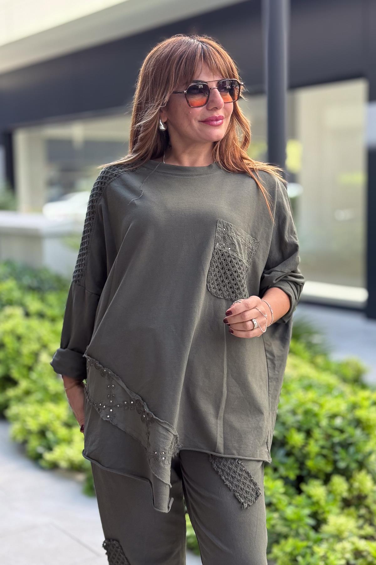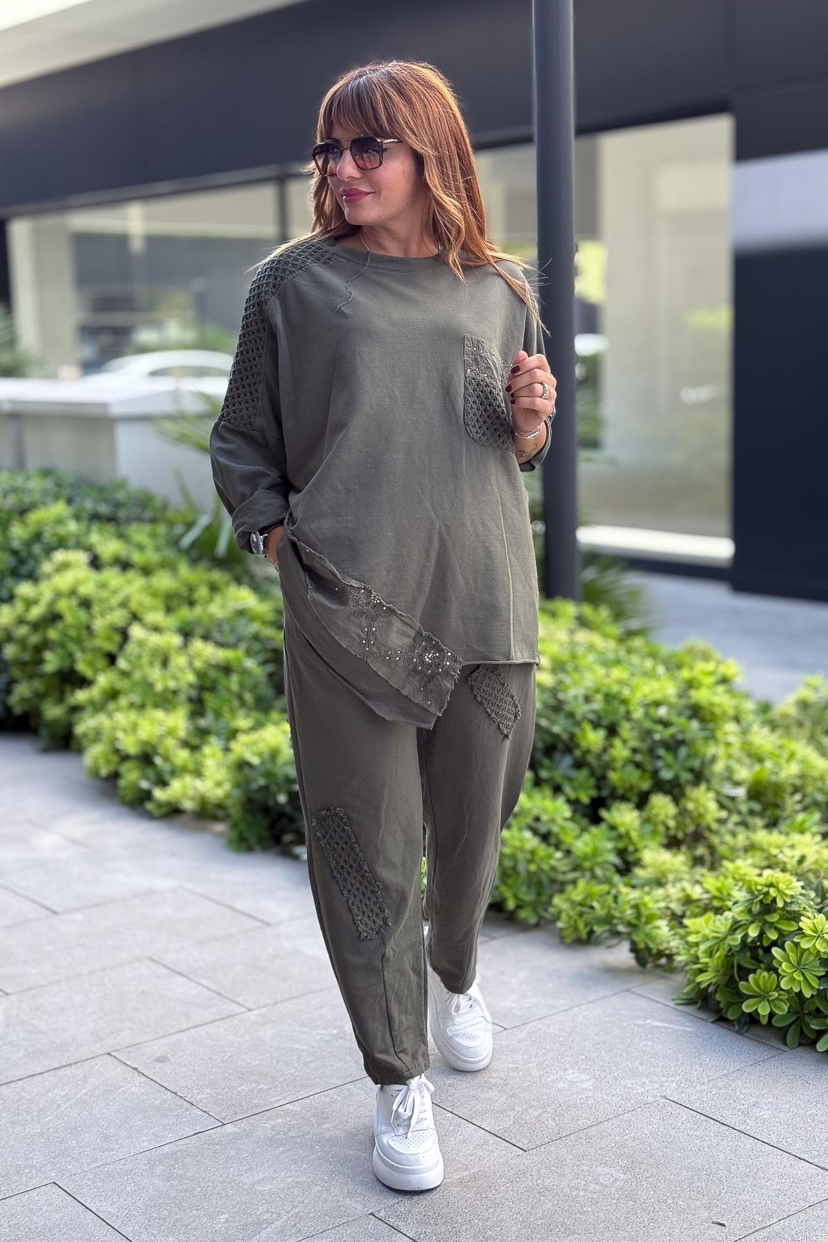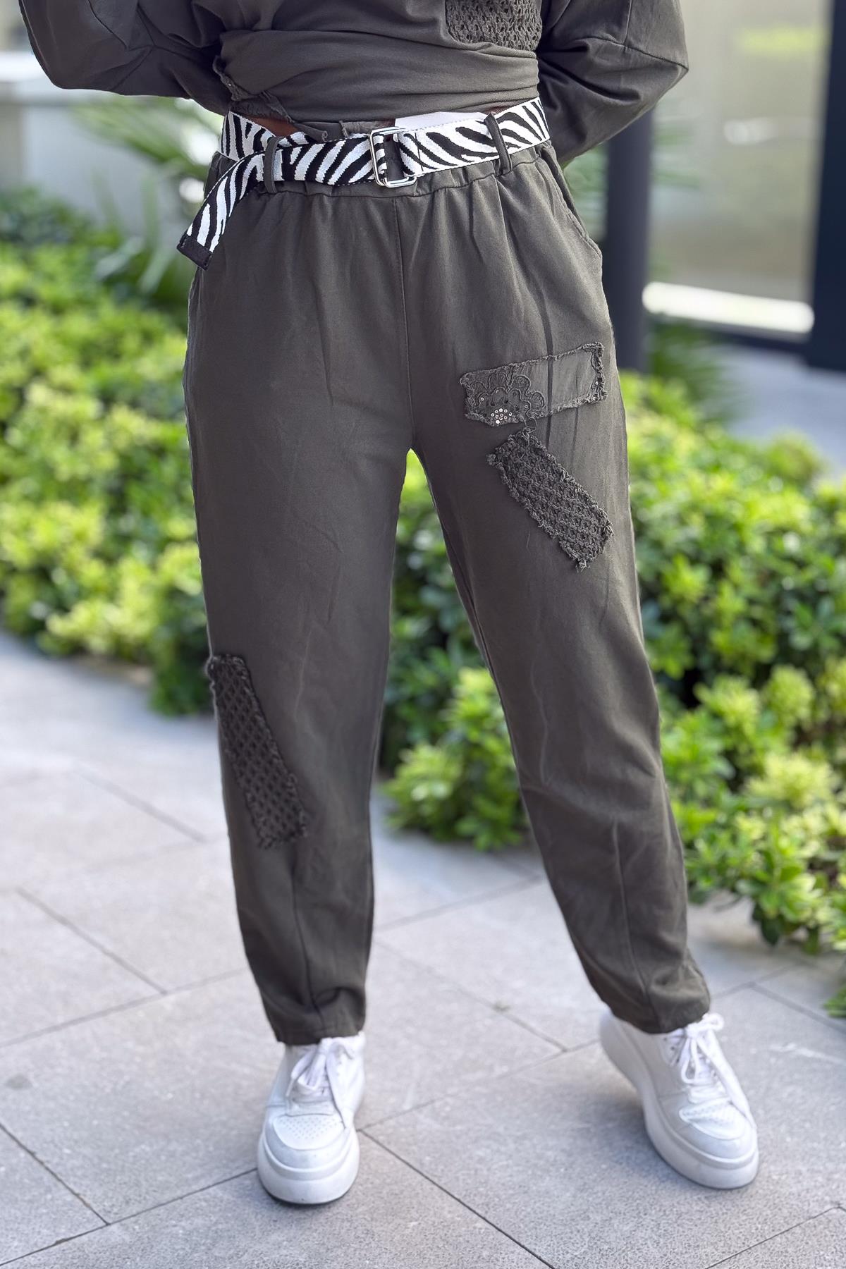 Zebra Kemerli File Detaylı Alt Üst Takım Haki Renk