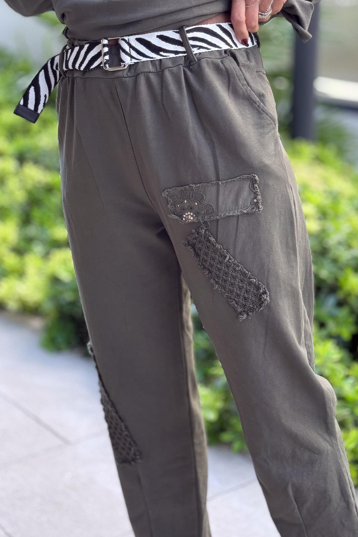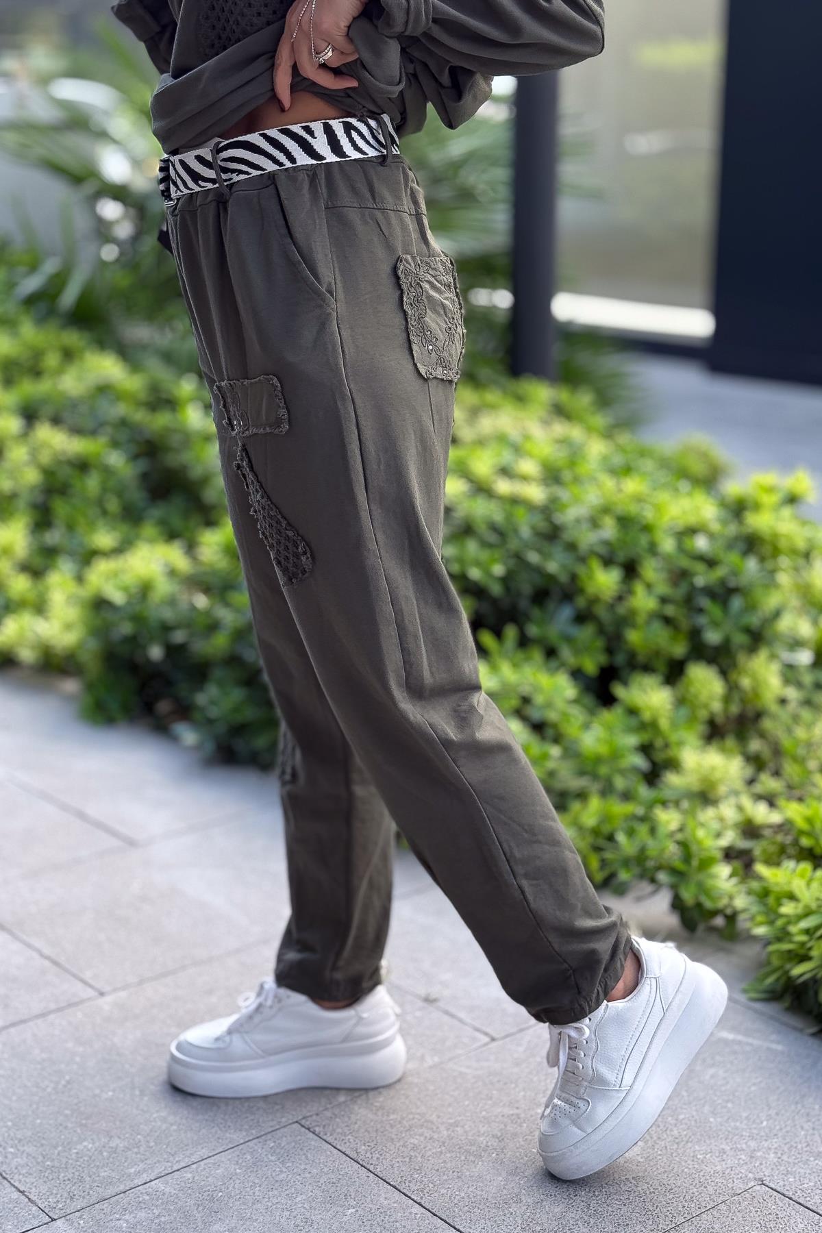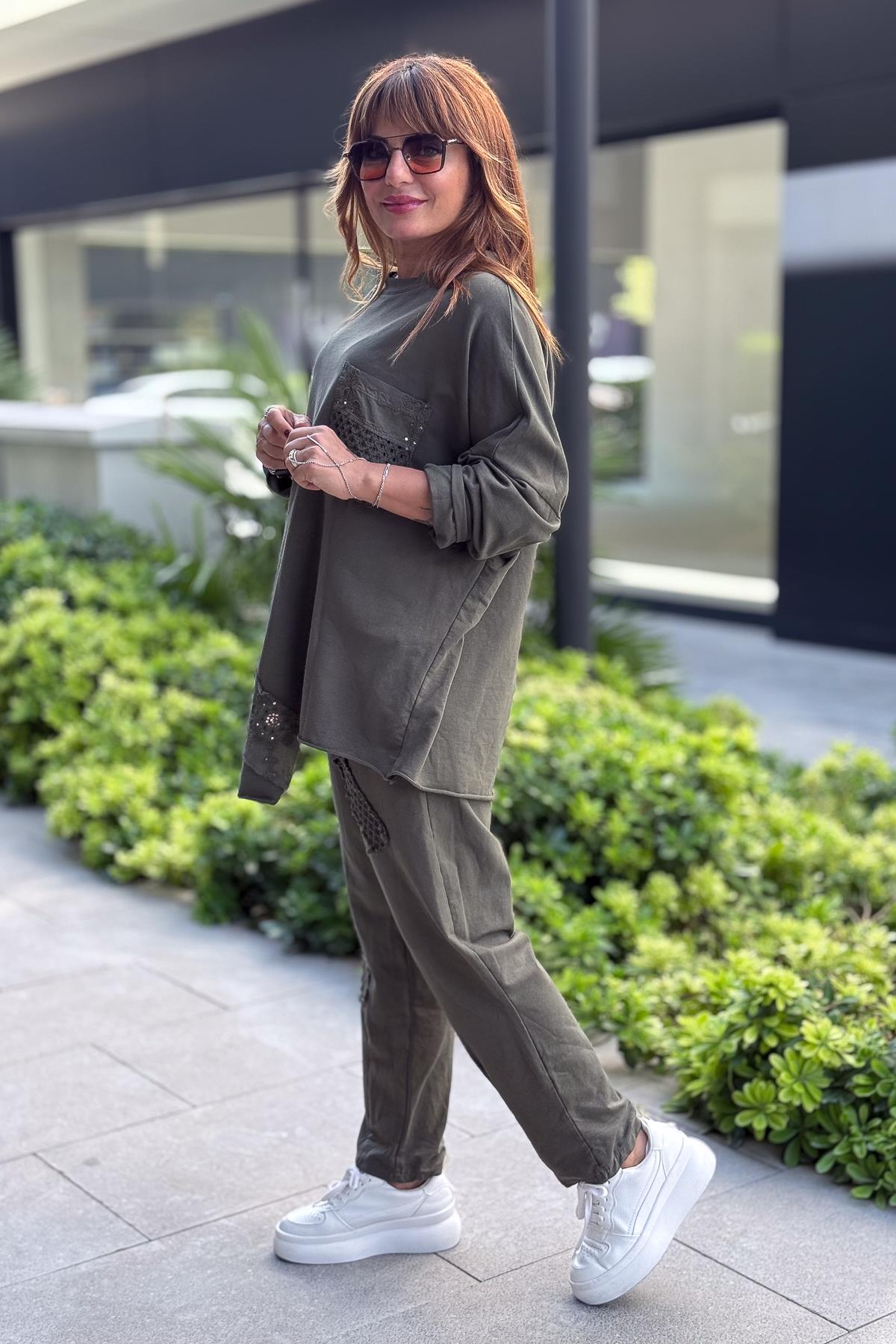 Zebra Kemerli File Detaylı Alt Üst Takım Haki Renk