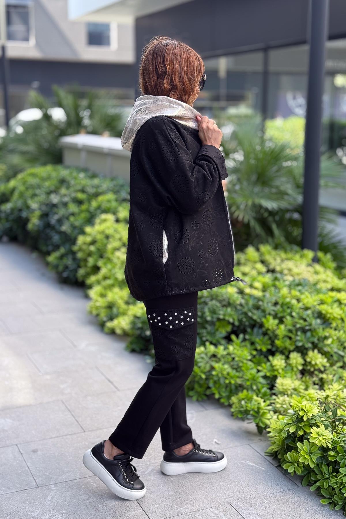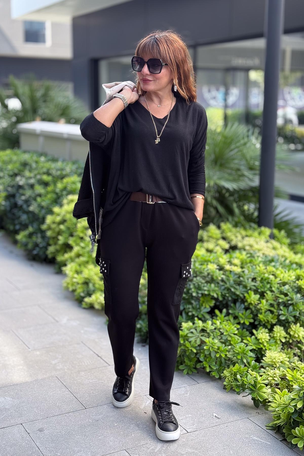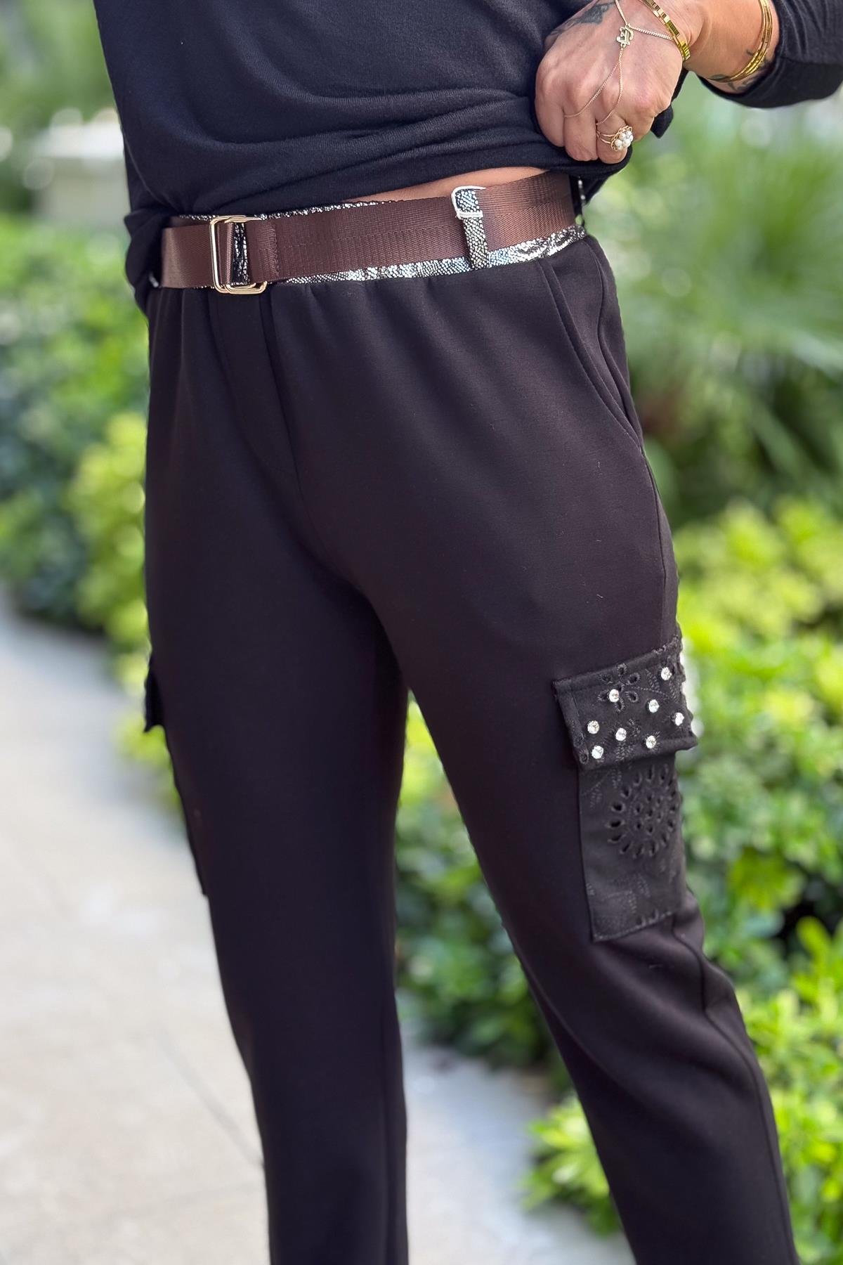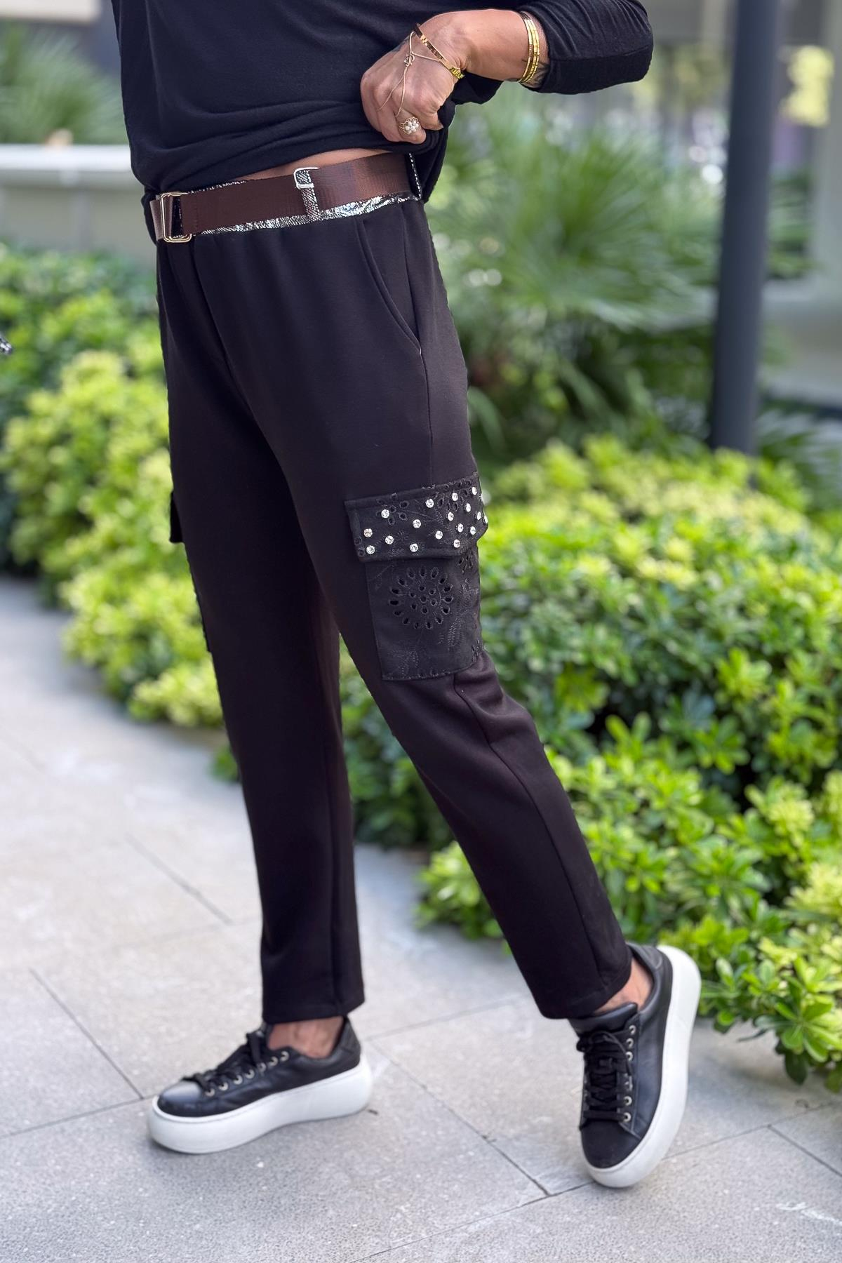 Zımba Taş Detaylı Fisto Cepli Modal Pantolon Siyah Renk